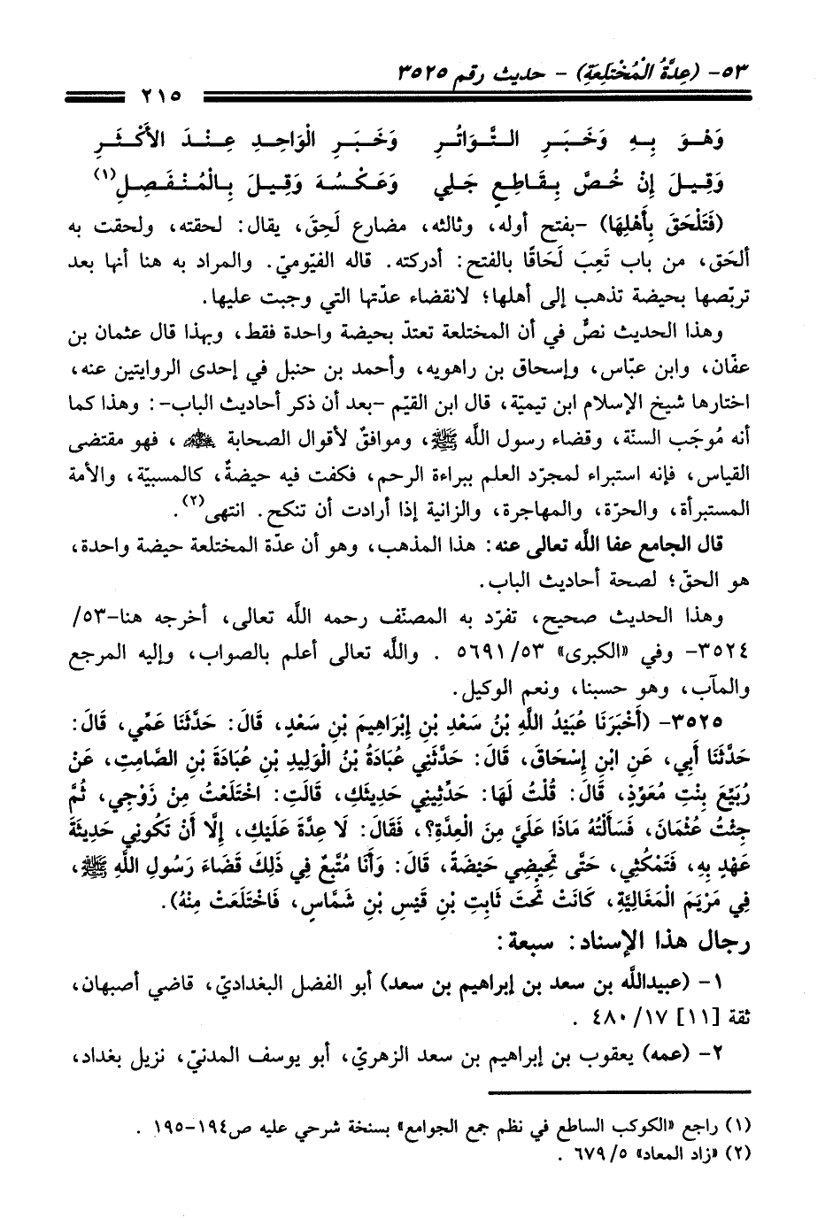 3525 - (أَخْبَرَنَا عُبَيْدُ اللَّهِ بْنُ سَعْدِ بْنِ إِبْرَاهِيمَ بْنِ سَعْدٍ, قَالَ: حَدَّثَنَا عَمِّي, قَالَ: حَدَّثَنَا أَبِي, عَنِ ابْنِ إِسْحَاقَ, قَالَ: حَدَّثَنِي عُبَادَةُ بْنُ الْوَلِيدِ بْنِ عُبَادَةَ بْنِ الصَّامِتِ, عَنْ رُبَيِّعٍ بِنْتِ مُعَوِّذٍ, قَالَ: قُلْتُ: لَهَا حَدِّثِينِي حَدِيثَكِ, قَالَتِ: اخْتَلَعْتُ مِنْ زَوْجِي, ثُمَّ جِئْتُ عُثْمَانَ, فَسَأَلْتُهُ مَاذَا عَلَيَّ مِنَ الْعِدَّةِ؟ , فَقَالَ: لاَ عِدَّةَ عَلَيْكِ, إِلاَّ أَنْ تَكُونِي حَدِيثَةَ عَهْدٍ بِهِ, فَتَمْكُثِي, حَتَّى تَحِيضِي حَيْضَةً, قَالَ: وَأَنَا مُتَّبِعٌ فِي ذَلِكَ قَضَاءَ رَسُولِ اللهِ - صلى اللَّه عليه وسلم -, فِي مَرْيَمَ الْمَغَالِيَّةِ, كَانَتْ تَحْتَ ثَابِتِ بْنِ قَيْسِ بْنِ شَمَّاسٍ, فَاخْتَلَعَتْ مِنْهُ).