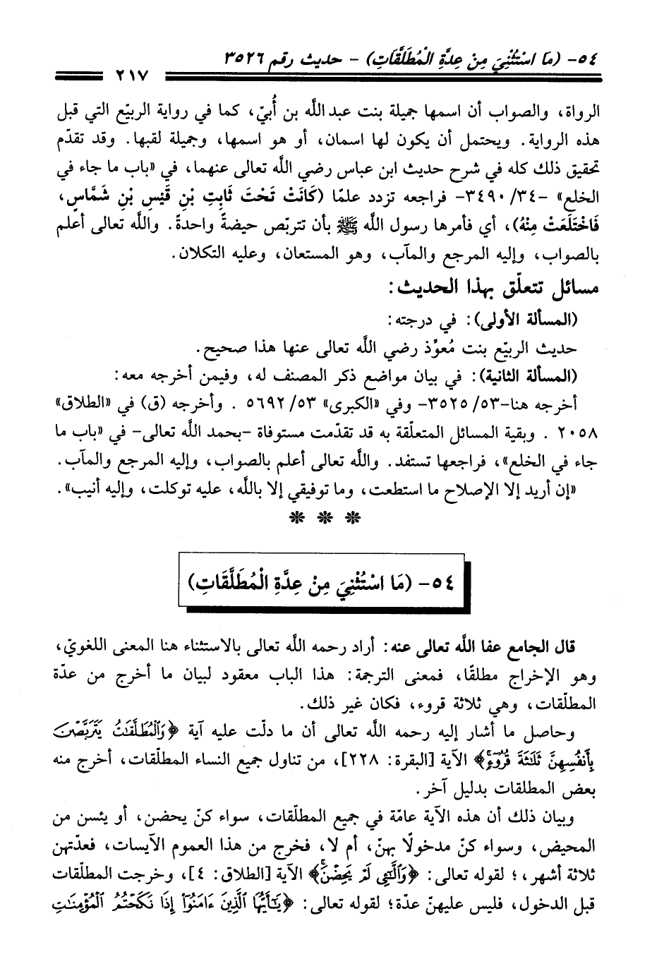 54 - (مَا اسْتُثْنِيَ مِنْ عِدَّةِ الْمُطَلَّقَاتِ)