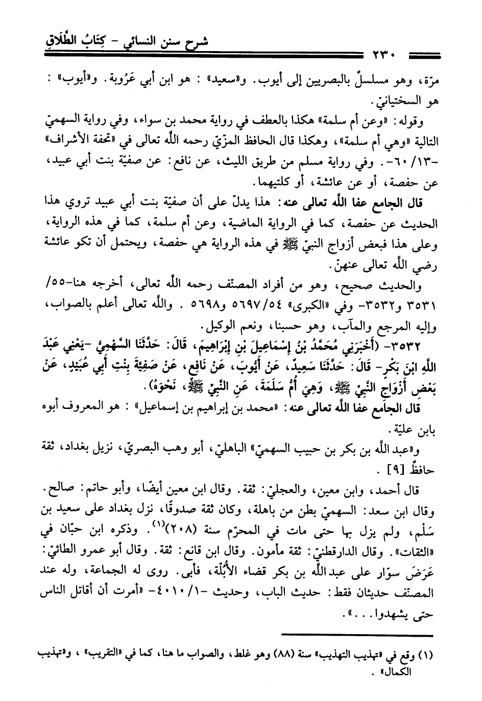 3532 - (أَخْبَرَنِي مُحَمَّدُ بْنُ إِسْمَاعِيلَ بْنِ إِبْرَاهِيمَ, قَالَ: حَدَّثَنَا السَّهْمِيُّ -يَعْنِي عَبْدَ اللَّهِ بْنَ بَكْرٍ- قَالَ: حَدَّثَنَا سَعِيدٌ, عَنْ أَيُّوبَ, عَنْ نَافِعٍ, عَنْ صَفِيَّةَ بِنْتِ أَبِي عُبَيْدٍ, عَنْ بَعْضِ أَزْوَاجِ النَّبِيِّ - صلى اللَّه عليه وسلم -, وَهِيَ أُمُّ سَلَمَةَ, عَنِ النَّبِيِّ - صلى اللَّه عليه وسلم -, نَحْوَهُ).