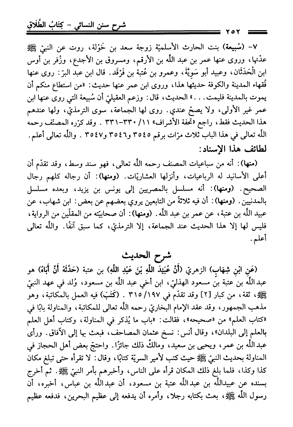 (عَنِ ابْنِ شِهَابِ) الزهريّ (أَنَّ عُبَيْدَ اللَّهِ بْنَ عَبدِ اللَّهِ) بن عتبة (حَدَّثَهُ أَنَّ أَبَاهُ) هو عبد اللَّهَ بن عتبة بن مسعود الهذليّ، ابن أخي عبد اللَّه بن مسعود، وُلد في عهد النبيّ - صلى اللَّه عليه وسلم -، ثقة، من كبار [2] وقد تقدّم في 197/ 315. (كَتَبَ) فيه العمل بالمكاتبة، وهو مذهب الجمهور، وقد عقد الإمام البخاريّ -رحمه اللَّه تعالى- للمكاتبة، والمناولة بابًا في "كتاب العلم" من "صحيحه"، فقالت: "باب ما يُذكر في المناولة، وكتاب أهل العلم بالعلم إلى البلدان"، وقال أنس: نسخ عثمان المصاحف، فبعث بها إلى الآفاق. ورأى عبد اللَّه بن عمر، ويحيى بن سعيد، ومالكٌ ذلك جائزًا. واحتجّ بعض أهل الحجاز في المناولة بحديث النبيّ - صلى اللَّه عليه وسلم - حيث كتب لأمير السريّة كتابًا، وقال: لا تقرأه حتى تبلغ مكان