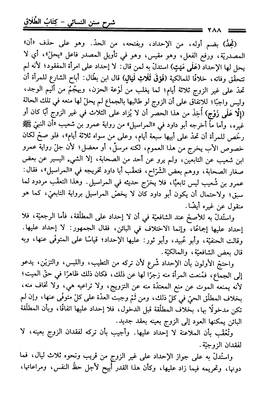 (تَحِدُّ) بضمّ أوله، من الإحداد، وبفتحه، من الحدّ. وهو على حذف "أن" المصدريّة، ورفع الفعل، وهو مقيس، وهو في تأويل المصدر فاعل "يحلّ"، أي لا يحل لها الإحداد (عَلَى مَيّتٍ) استدلّ به لمن قال: لا إحداد على امرأة المفقود؛ لأنه لم تتحقّق وفاته، خلافًا للمالكية (فَوْقَ ثَلَاثِ لَيَالٍ) قال ابن بطّال: أباح الشارع للمرأة أن تحدّ على غير الزوج ثلاثة أيام؛ لما يغلب من لَوْعة الحزن، ويهجُمُ من أليم الوجد، وليس واجبًا؛ للاتفاق على أن الزوج لو طالبها بالجماع لم يحلّ لها منعه في تلك الحالة (إِلاَّ عَلَى زَوْجٍ) أُخِذَ من هذا الحصر أن لا يُزاد على الثلاث في غير الزوج أبًا كان أو غيره، وأما ما أخرجه أبو داود في "المراسيل" من رواية عمرو بن شعيب "أن النبيّ - صلى اللَّه عليه وسلم - رخّص للمرأة أن تحد على أبيها سبعة أيام، وعلى من سواه ثلاثة أيام"، فلو صحّ لكان خصوص الأب يخرج من هذا العموم، لكنه مرسلٌ، أو معضل؛ لأن جلّ رواية عمرو ابن شعيب عن التابعين، ولم يرو عن أحد من الصحابة، إلا الشيء اليسير عن بعض صغار الصحابة، ووهم بعض الشّرّاح، فتعقّب أبا داود تخريجه في "المراسيل"، فقال: عمرو بن شُعيب ليس تابعيًّا، فلا يخرّج حديثه في المراسيل. وهذا التعقّب مردود لما سبق؛ ولاحتمال أن يكون أبو داود كان لا يخصّ المراسيل برواية التابعيّ، كما هو منقول عن غيره أيضًا.