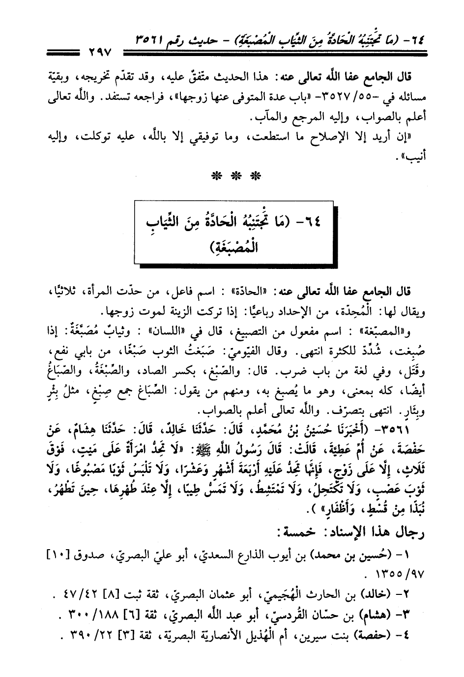 64 - (مَا تَجْتَنِبُهُ الْحَادَّةُ مِنَ الثِّيَابِ الْمُصْبَغَةِ)
