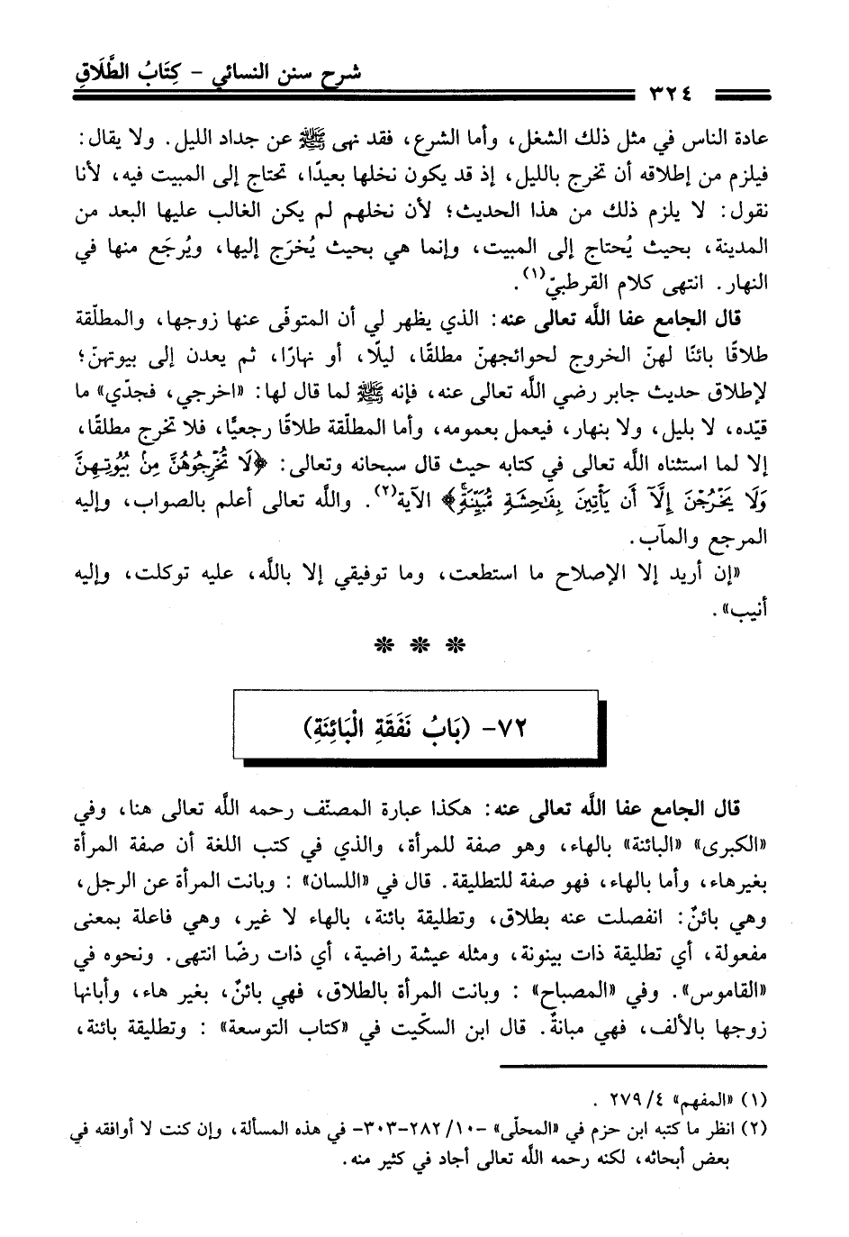 (¬2) انظر ما كتبه ابن حزم في "المحلّى" -10/ 282 - 303 - في هذه المسألة، وإن كنت لا أوافقه في بعض أبحاثه، لكنه -رحمه اللَّه تعالى- أجاد في كثير منه.