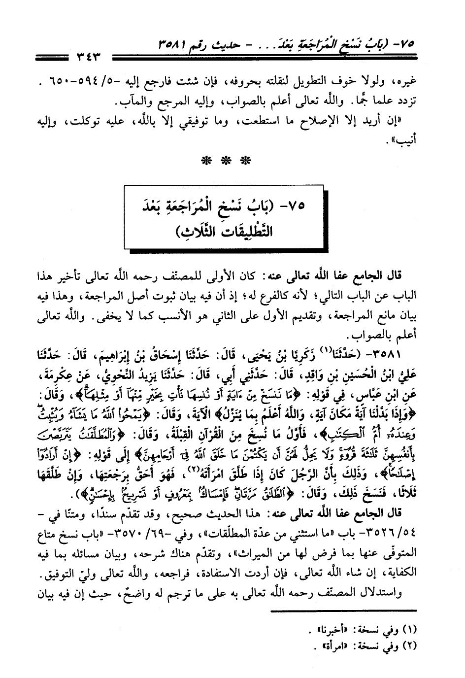 75 - (بَابُ نَسْخِ الْمُرَاجَعَةِ بَعْدَ التَّطْلِيقَات الثَّلاَثِ)