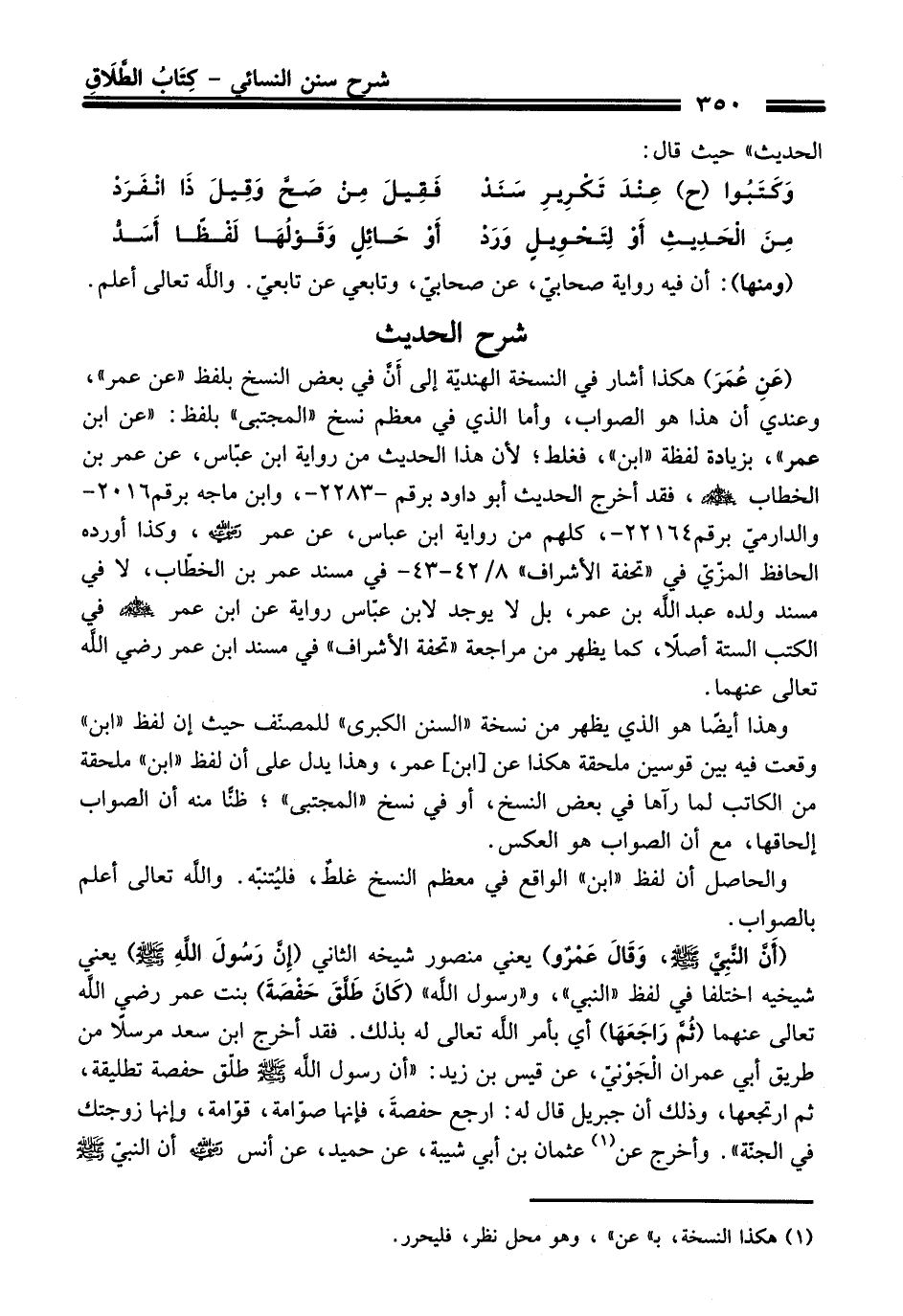 وهذا أيضًا هو الذي يظهر من نسخة "السنن الكبرى" للمصنّف حيث إن لفظ "ابن" وقعت فيه بين قوسين ملحقة هكذا عن [ابن] عمر، وهذا يدل على أن لفظ "ابن" ملحقة من الكاتب لما رآها في بعض النسخ، أو في نسخ "المجتبى"؛ ظنًّا منه أن الصواب إلحاقها، مع أن الصواب هو العكس.