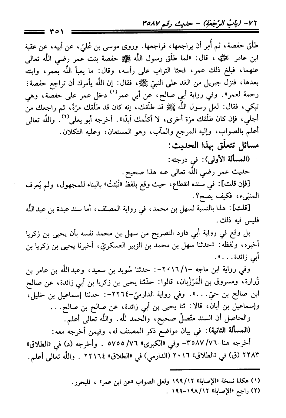 [قلت]: هذا بالنسبة لسهل بن محمد، في رواية المصنّف، أما سند عبدة بن عبد اللَّه فليس فيه ذلك.