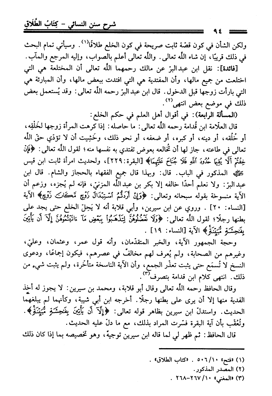 (¬1) "فتح" 10/ 506. "كتاب الطلاق".