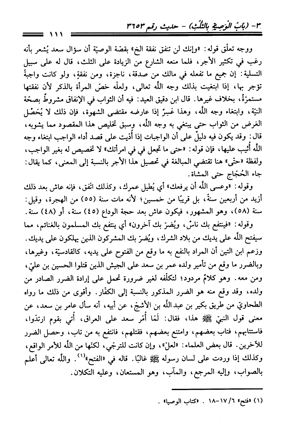 (¬1) "فتح" 6/ 17 - 18. "كتاب الوصايا".