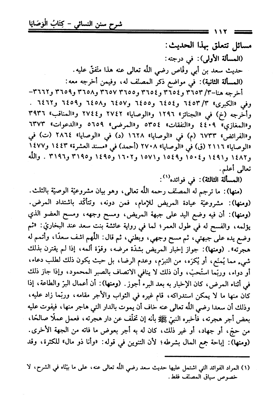 (¬1) المراد الفوائد التي اشتمل عليها حديث سعد - رضي اللَّه تعالى عنه -، على ما بيّنّاه في الشرح، لا خصوص سياق المصنّف فقط.