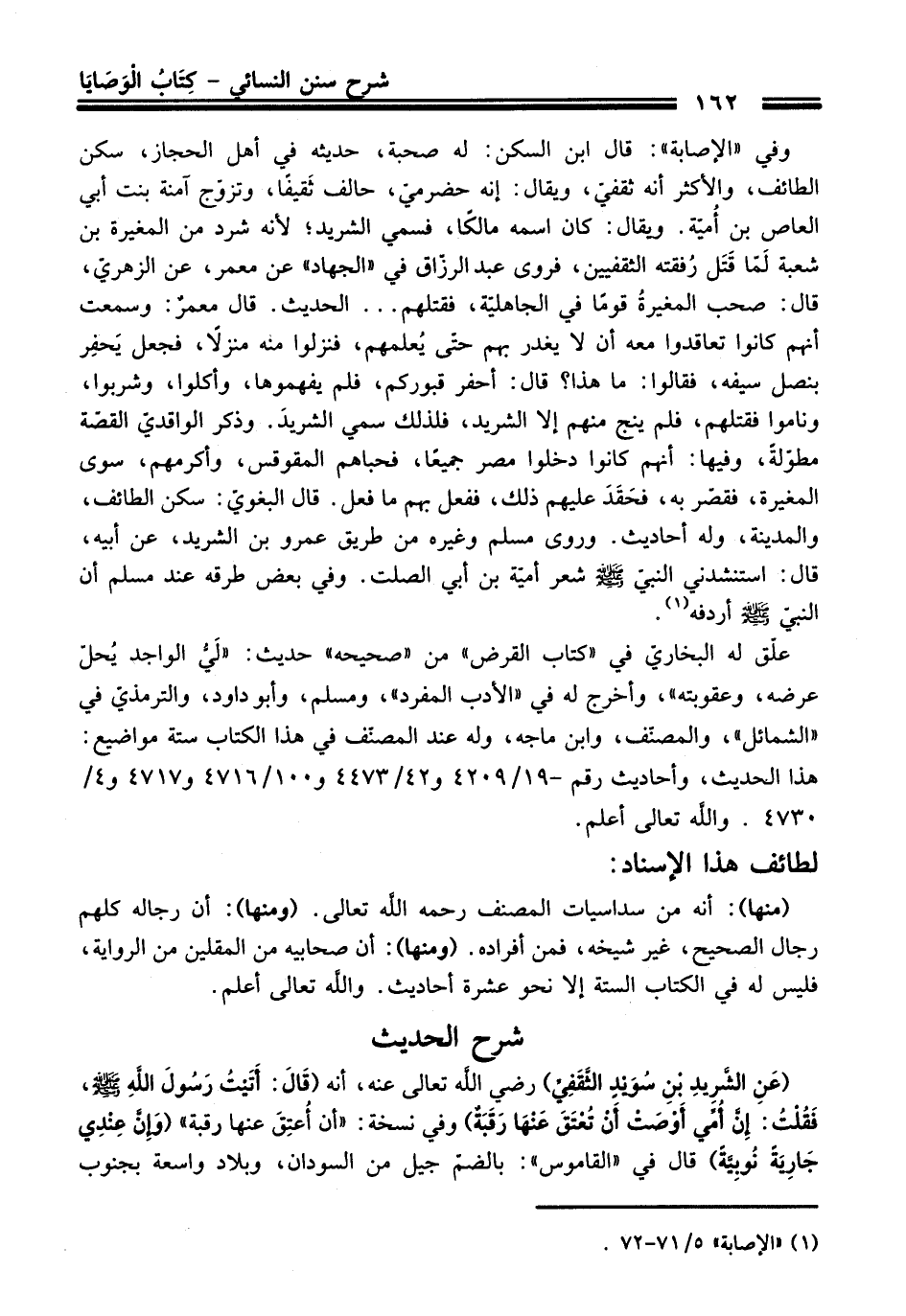 (عَنِ الشَّرِيدِ بْنِ سُوَيدِ الثَّقَفِيِّ) - رضي اللَّه تعالى عنه -، أنه (قَالَ: أَتَيْتُ رَسُولَ اللَّهِ - صلى اللَّه عليه وسلم -، فَقُلْتُ: إِنَّ أُمِّي أَوْصَتْ أَنَّ تُعْتَقَ عَنْهَا رَقَبَةٌ) وفي نسخة: "أن أُعتِقَ عنها رقبة" (وَإِنَّ عِنْدِي جَارِيَة نُوبِيَّةً) قال في "القاموس": بالضمّ جيل من السودان، وبلاد واسعة بجنوب