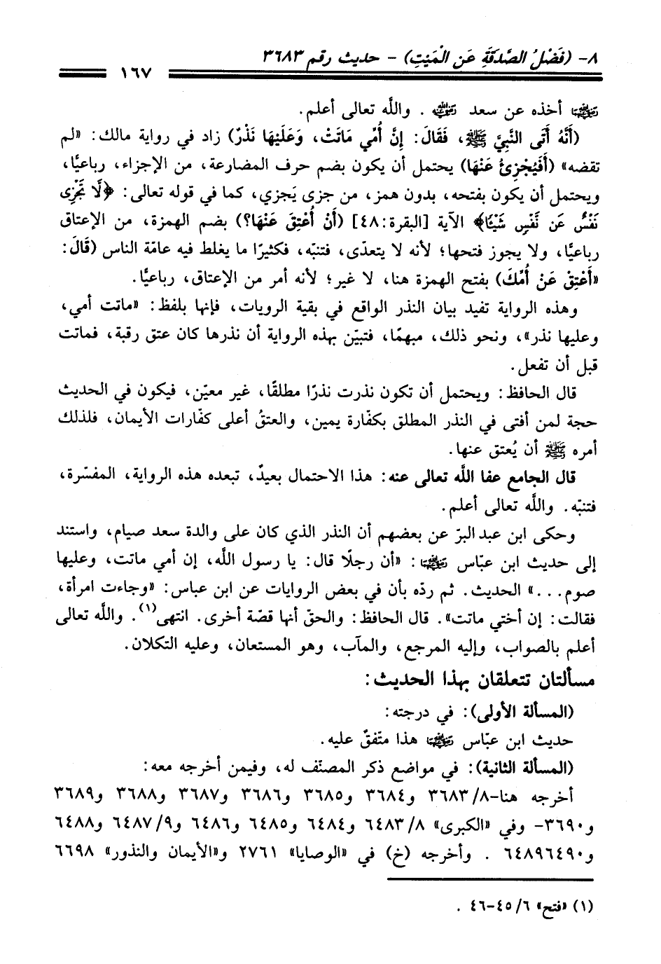 مسألتان تتعلقان بهذا الحديث: