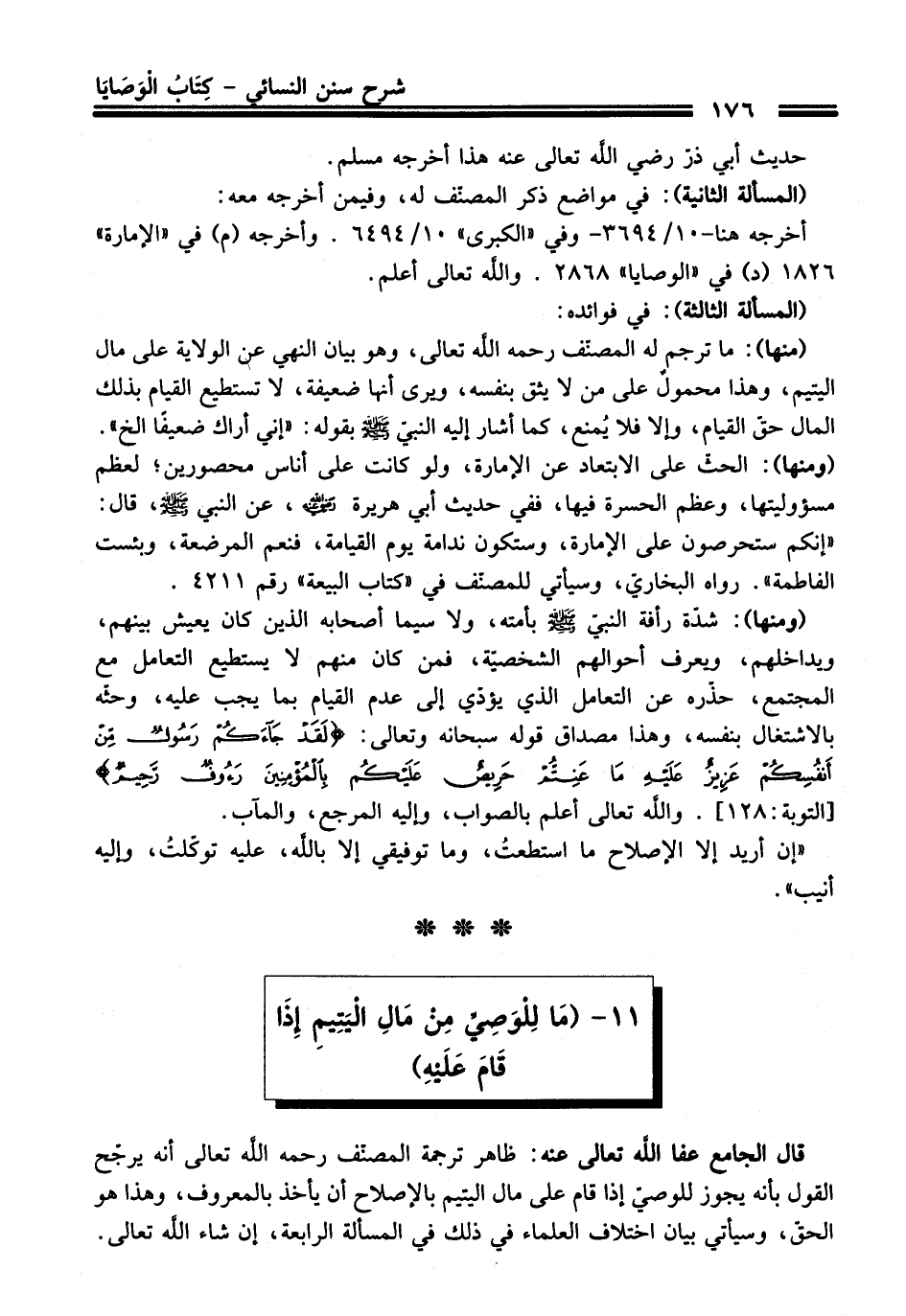 11 - (مَا لِلْوَصِيِّ مِنْ مَالِ الْيَتِيمِ إِذَا قَامَ عَلَيْهِ)