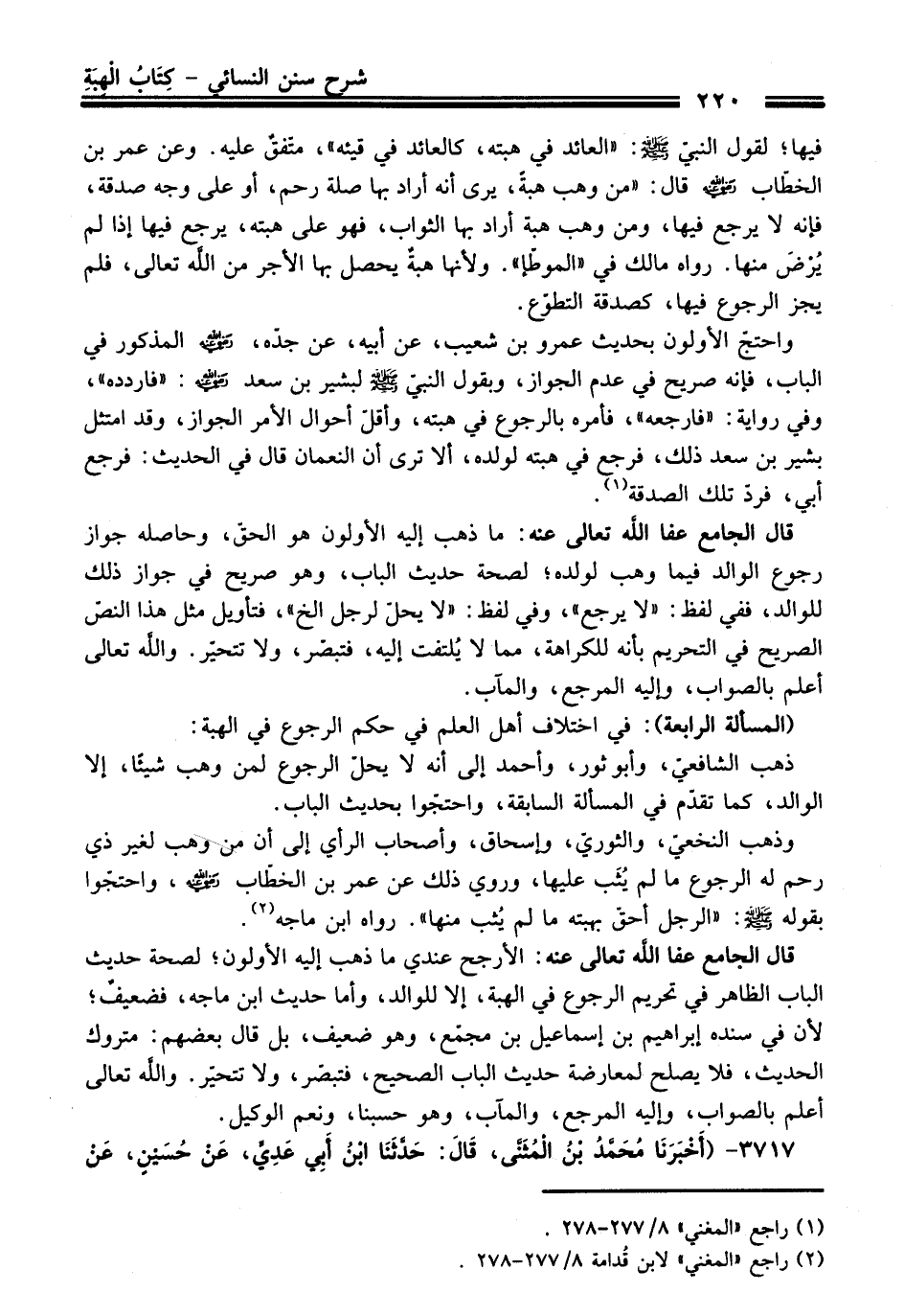 (المسألة الرابعة): في اختلاف أهل العلم في حكم الرجوع في الهبة: