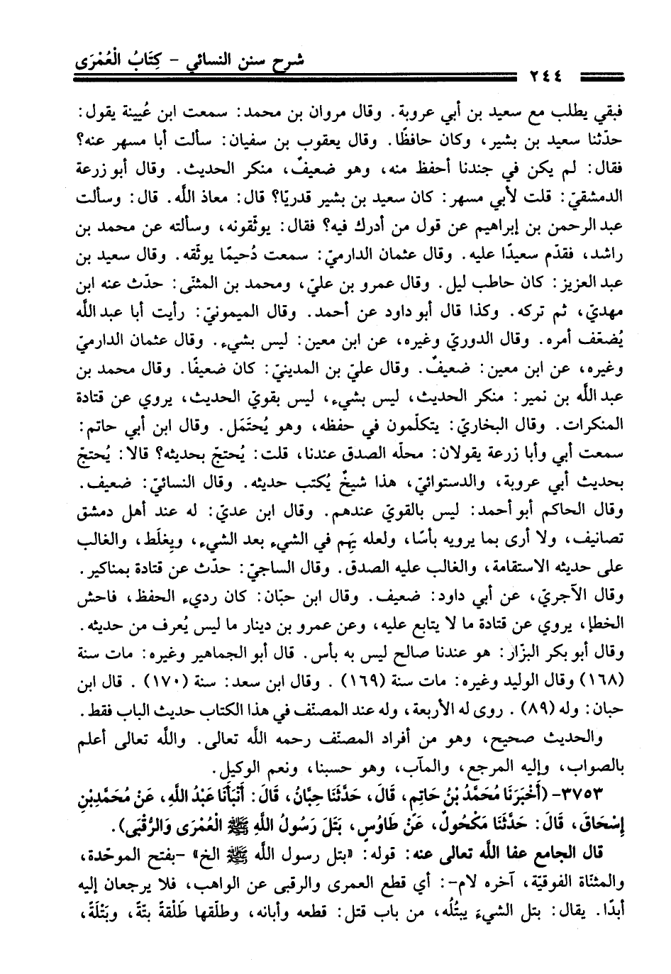 3753 - (أَخْبَرَنَا مُحَمَّدُ بْنُ حَاتِمٍ, قَالَ: حَدَّثَنَا حِبَّانُ, قَالَ: أَنْبَأَنَا عَبْدُ اللَّهِ, عَنْ مُحَمَّدِ بْنِ إِسْحَاقَ, قَالَ: حَدَّثَنَا مَكْحُولٌ, عَنْ طَاوُسٍ, بَتَلَ رَسُولُ اللهِ - صلى اللَّه عليه وسلم - الْعُمْرَى وَالرُّقْبَى).