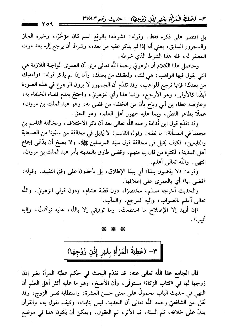 3 - (عَطِيَّةُ الْمَرْأَةِ بِغَيْرِ إِذْنِ زَوْجِهَا)