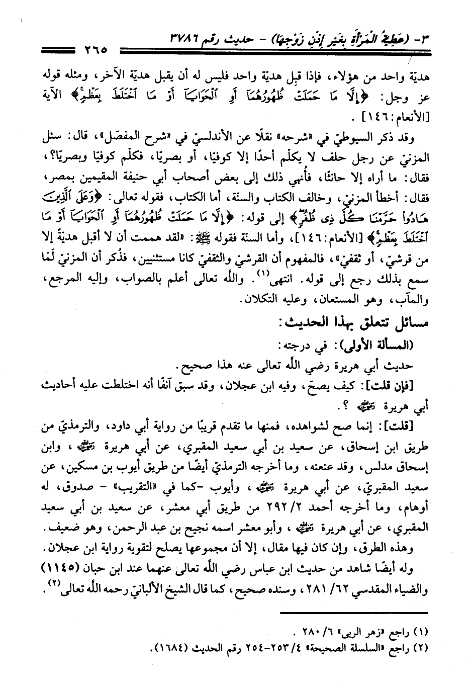 (¬2) راجع "السلسلة الصحيحة" 4/ 253 - 254 رقم الحديث (1684).
