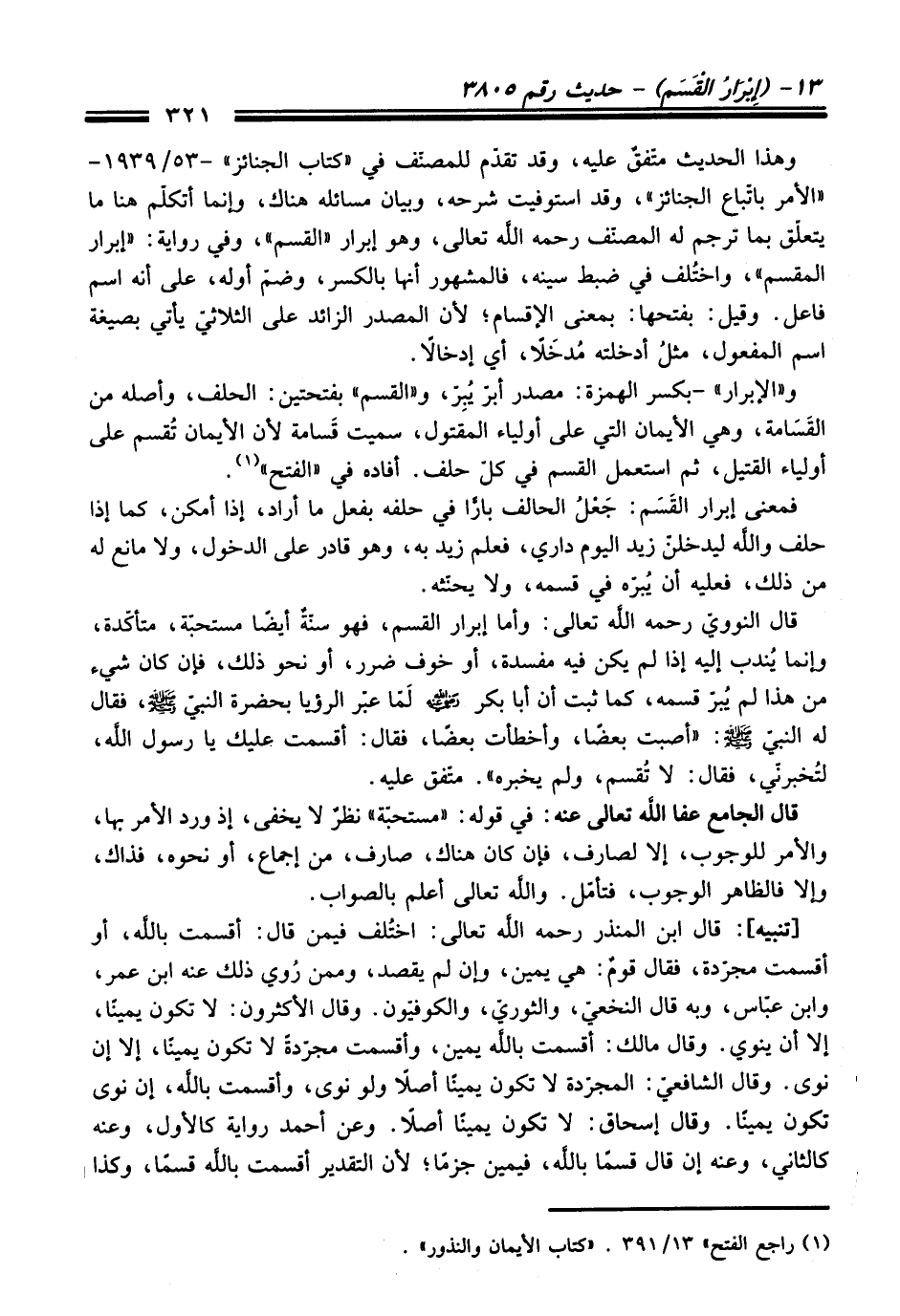 (¬1) راجع الفتح" 13/ 391. "كتاب الأيمان والنذور".