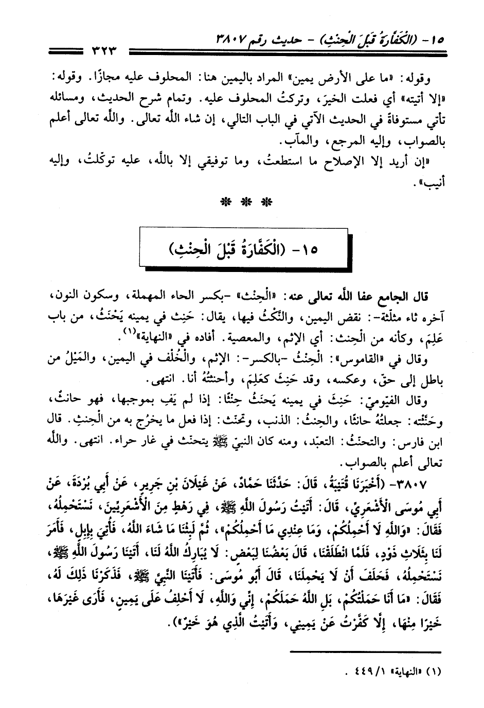 15 - (الْكَفَّارَةُ قَبْلَ الْحِنْثِ)