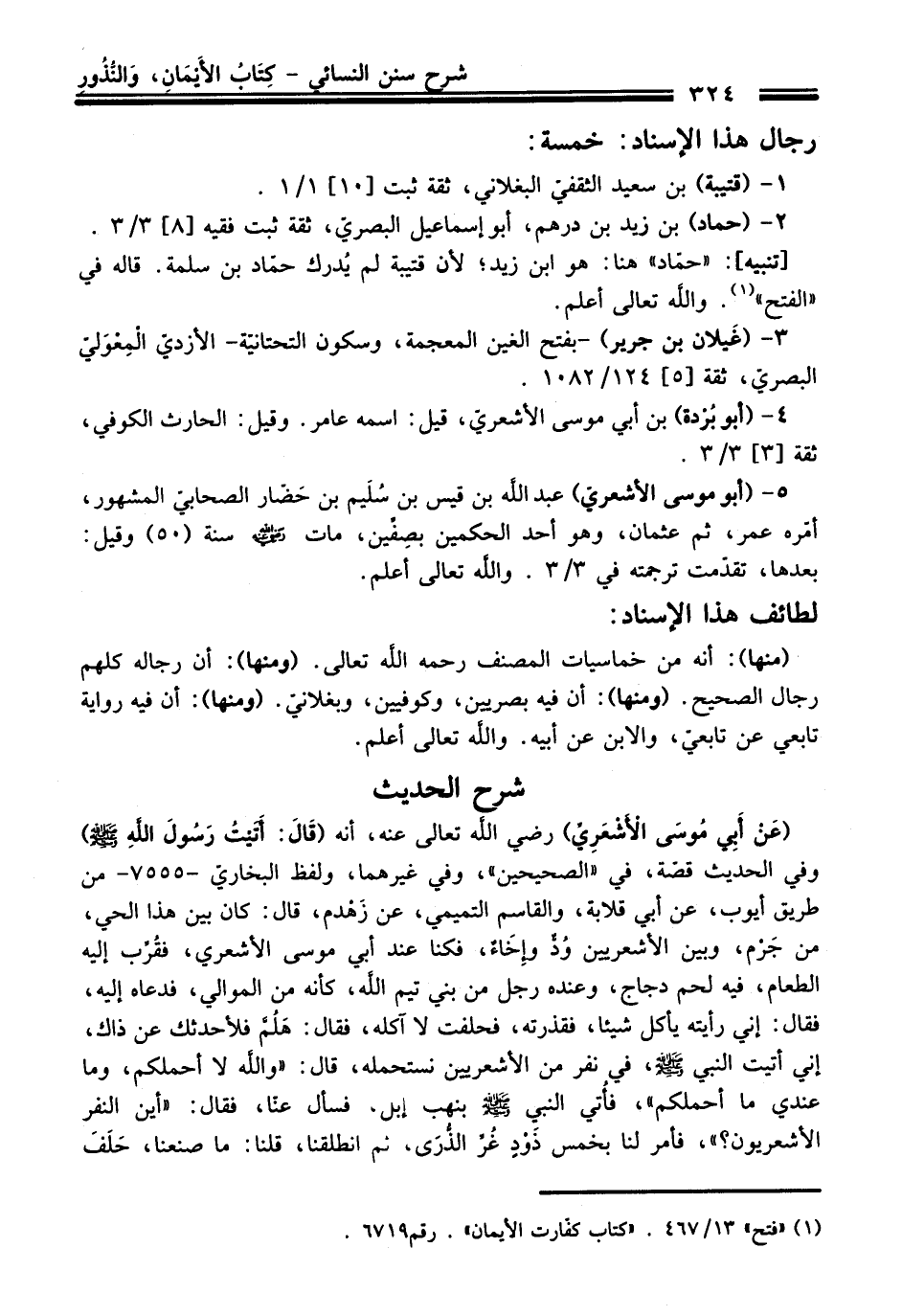 (¬1) "فتح" 13/ 467. "كتاب كفّارت الأيمان". رقم 6719.