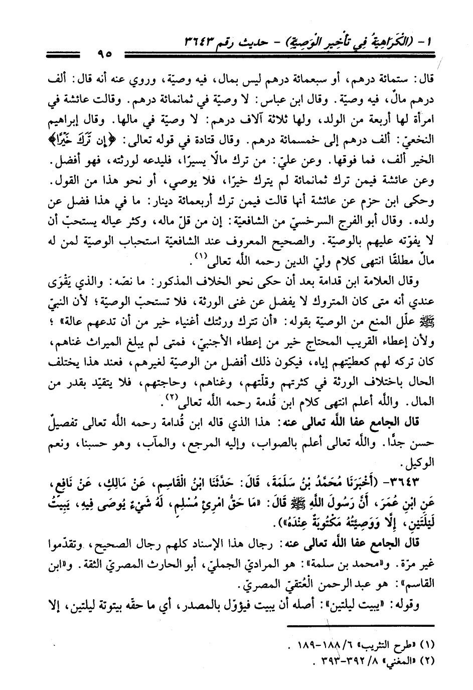 قال الجامع - عفا اللَّه تعالى عنه -: هذا الذي قاله ابن قُدامة -رحمه اللَّه تعالى- تفصيلٌ حسن جدًّا. واللَّه تعالى أعلم بالصواب، وإليه المرجع، والمآب، وهو حسبنا، ونعم الوكيل.