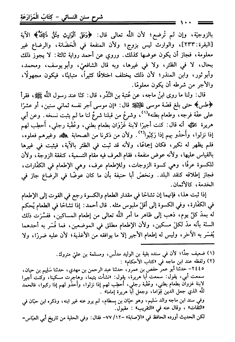 قال: ولنا ما روى ابنُ ماجه، عن عُتبة بن النُّذَّر، قال: كنا عند رسول اللَّه - صلى اللَّه عليه وسلم -، فقرأ {طس} حتى بلغ قصّة موسى - عليه السلام - قال: " إن موسى آجر نفسه ثماني سنين، أو عشرًا على عفّة فرجه، وطعام بطنه" (¬1)، وشرعُ من قبلنا شرعٌ لنا ما لم يثبت نسخه. وعن أبي هريرة - رضي اللَّه عنه - أنه قال: كنت أجيرًا لابنة غَزْوَان بطعام بطني، وعُقْبة رجلي، أَحطِب لهم إذا نرْلوا، وأَحدُو بهم إذا رَكِبُوا (¬2). ولأن من ذكرنا من الصحابة - رضي اللَّه عنهم - وغيرهم فعلوه، فلم يظهر له نكير، فكان إجماعًا, ولأنه قد ثبت في الظئر بالآية، فيثبت في غيرها بالقياس عليها, ولأنه عوض منفعة، فقام العرف فيه مقام التسمية، كنفقة الزوجة، ولأن للكسوة عرفًا، وهي كسوة الزوجات، وللإطعام عرف، وهي الإطعام في الكفّارات، فجاز إطلاقه كنقد البلد. ونخصّ أبا حنيفة بأن ما كان عوضًا في الرضاع جاز في الخدمة، كالأثمان.