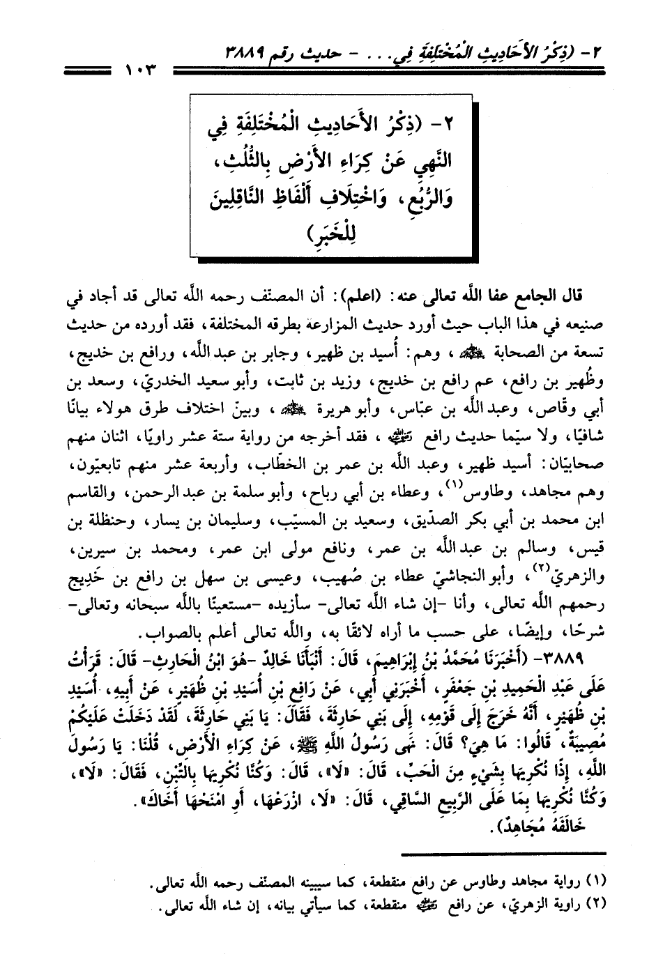 2 - (ذِكْرُ الأَحَادِيثِ الْمُخْتَلِفَةِ فِي النَّهِيِ عَنْ كِرَاءِ الأَرْضِ بِالثُّلُثِ، وَالرُبُعِ، وَاخْتِلَافِ أَلْفَاظِ النَّاقِلِينَ لِلْخَبَرِ)