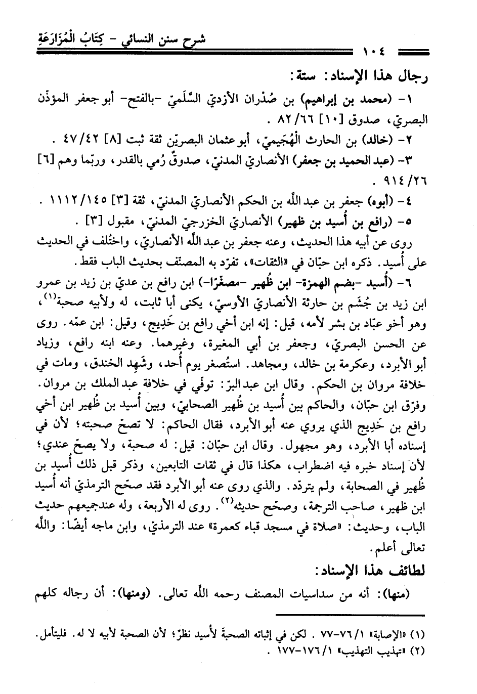 5 - (رافع بن أُسيد بن ظهير) الأنصاريّ الخزرجيّ المدنيّ، مقبول [3].