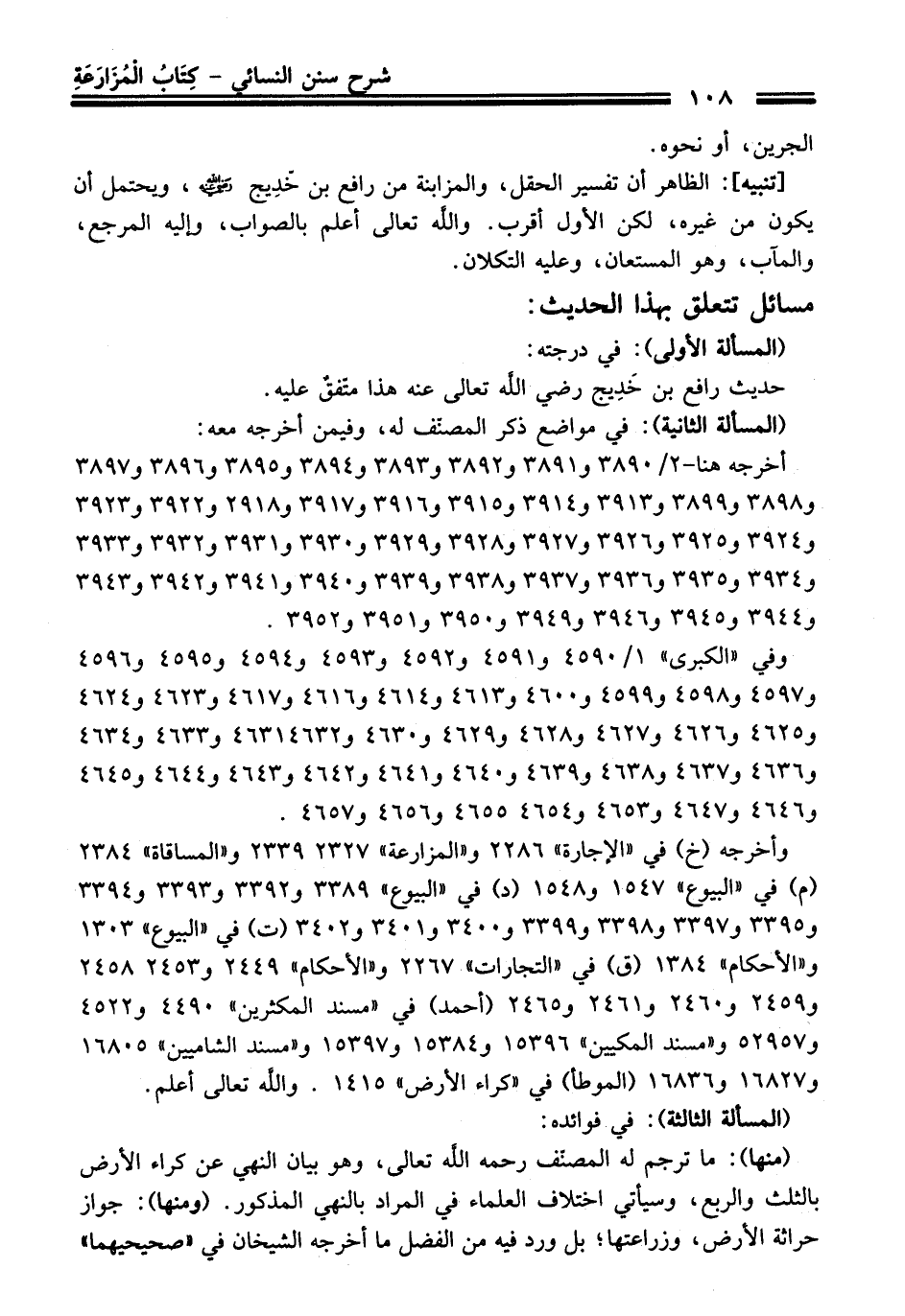 [تنبيه]: الظاهر أن تفسير الحقل، والمزابنة من رافع بن خَدِيج - رضي اللَّه عنه -، ويحتمل أن يكون من غيره، لكن الأول أقرب. واللَّه تعالى أعلم بالصواب، وإليه المرجع، والمآب، وهو المستعان، وعليه التكلان.