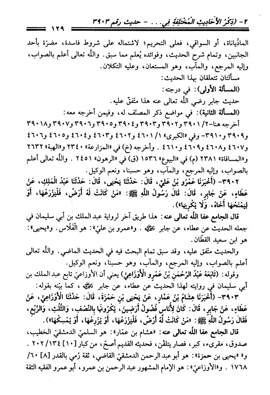 3903 - (أَخْبَرَنَا هِشَامُ بْنُ عَمَّارٍ, عَنْ يَحْيَى بْنِ حَمْزَةَ, قَالَ: حَدَّثَنَا الأَوْزَاعِيُّ, عَنْ عَطَاءٍ, عَنْ جَابِرٍ, قَالَ: كَانَ لأُنَاسٍ فُضُولُ أَرَضِينَ, يُكْرُونَهَا بِالنِّصْفِ, وَالثُّلُثِ, وَالرُّبُعِ, فَقَالَ رَسُولُ اللَّهِ - صلى اللَّه عليه وسلم -: «مَنْ كَانَتْ لَهُ أَرْضٌ, فَلْيَزْرَعْهَا, أَوْ يُزْرِعْهَا, أَوْ يُمْسِكْهَا».