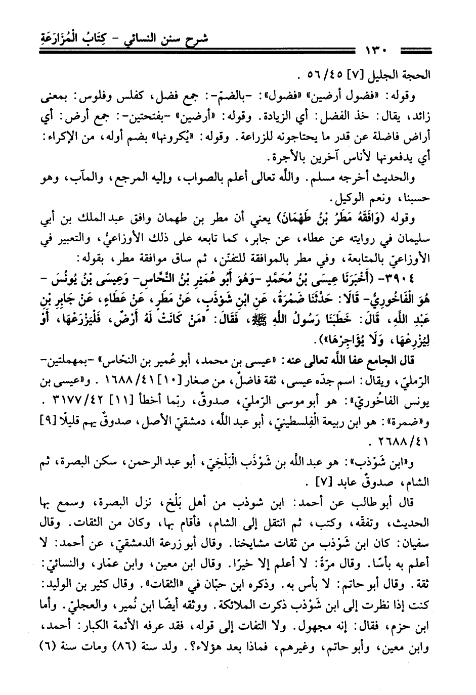 قال الجامع - عفا اللَّه تعالى عنه -: "عيسى بن محمد، أبو عُمير بن النحاس" -بمهملتين- الزملي، ويقال: اسم جدّه عيسى، ثقة فاضل، من صغار [10] 41/ 1688. و"عيسى بن يونس الفاخُوريّ": هو أبو موسى الرّمليّ، صدوق، ربّما أخطأ [11] 42/ 3177.