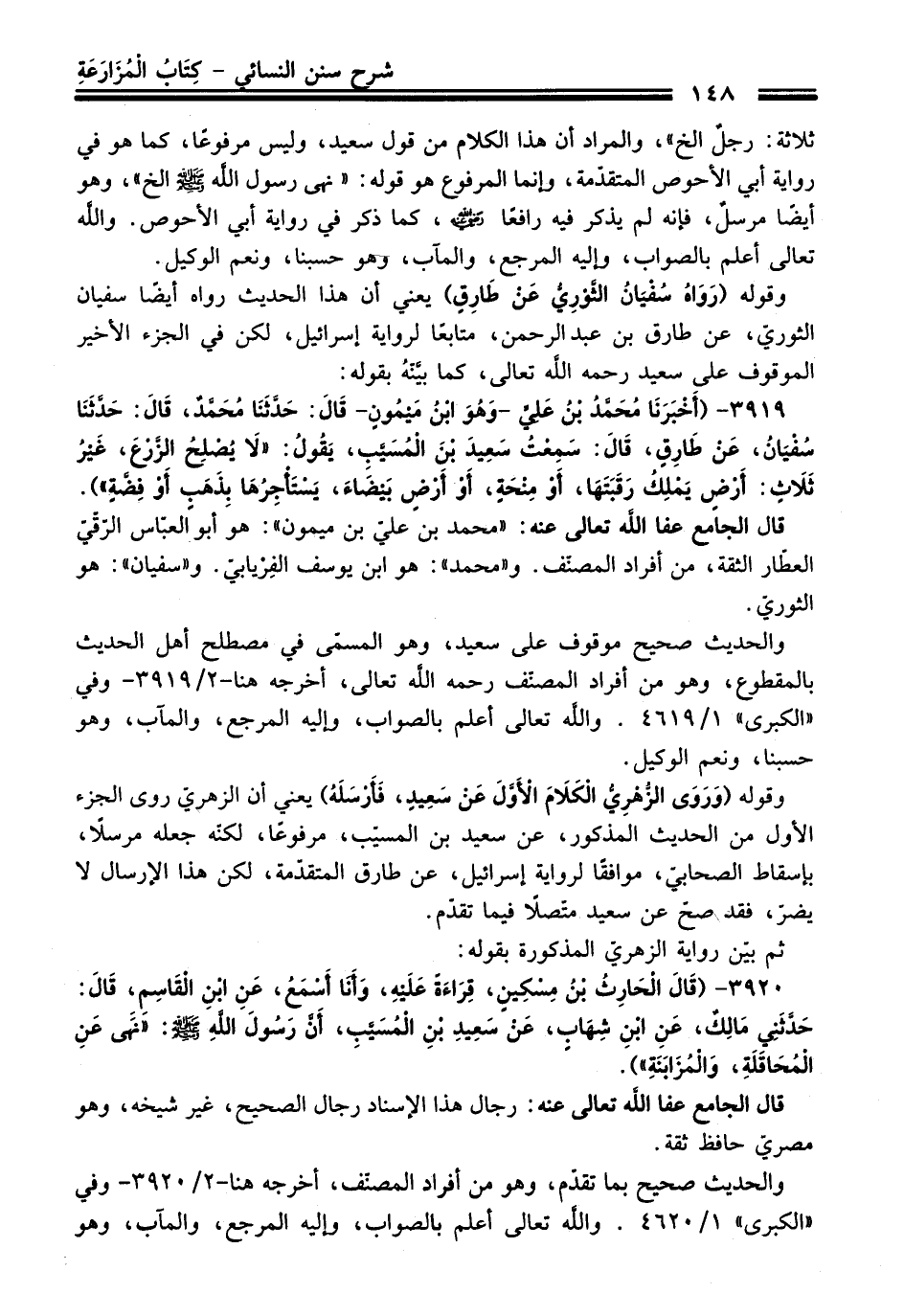 والحديث صحيح موقوف على سعيد، وهو المسمّى في مصطلح أهل الحديث بالمقطوع، وهو من أفراد المصنّف -رحمه اللَّه تعالى-، أخرجه هنا-2/ 3919 - وفي "الكبرى" 1/ 4619. واللَّه تعالى أعلم بالصواب، وإليه المرجع، والمآب، وهو حسبنا، ونعم الوكيل.
