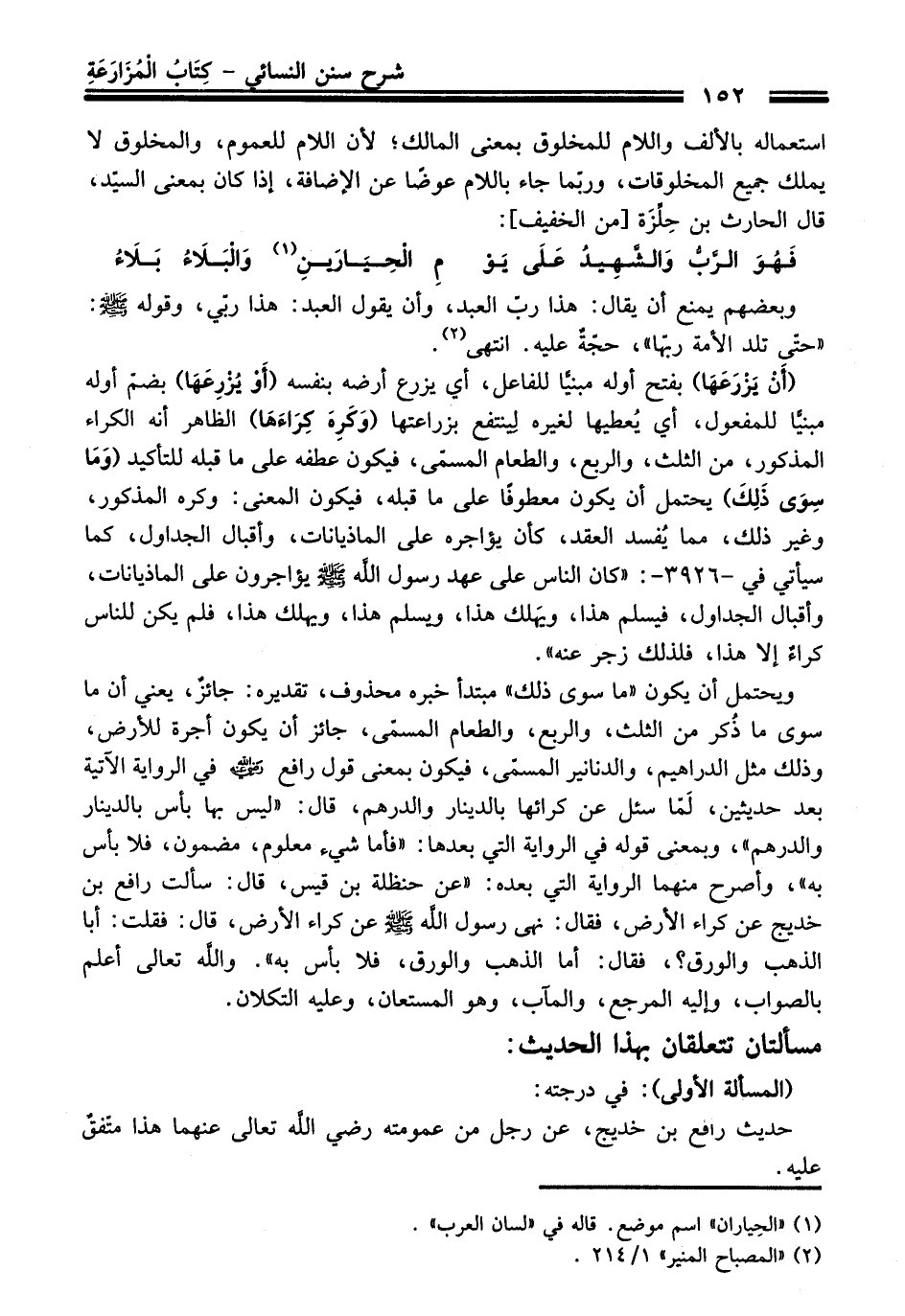 مسألتان تتعلقان بهذا الحديث: