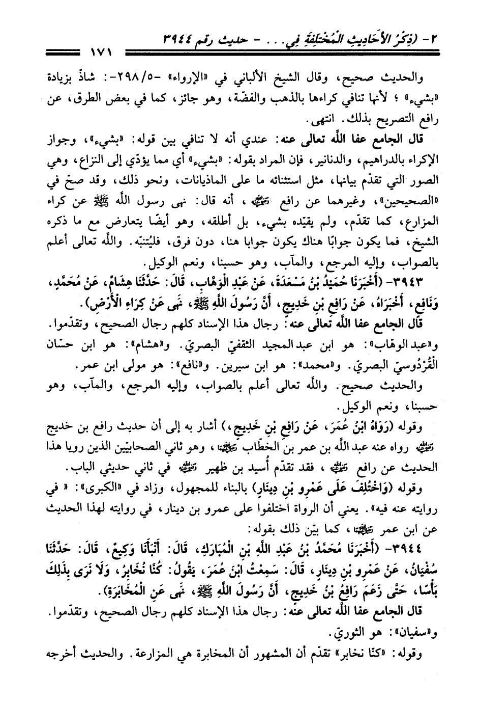 3943 - (أَخْبَرَنَا حُمَيْدُ بْنُ مَسْعَدَةَ, عَنْ عَبْدِ الْوَهَّابِ, قَالَ: حَدَّثَنَا هِشَامٌ, عَنْ مُحَمَّدٍ, وَنَافِعٍ, أَخْبَرَاهُ, عَنْ رَافِعِ بْنِ خَدِيجٍ, أَنَّ رَسُولَ اللَّهِ - صلى اللَّه عليه وسلم -, نَهَى عَنْ كِرَاءِ الأَرْضِ).