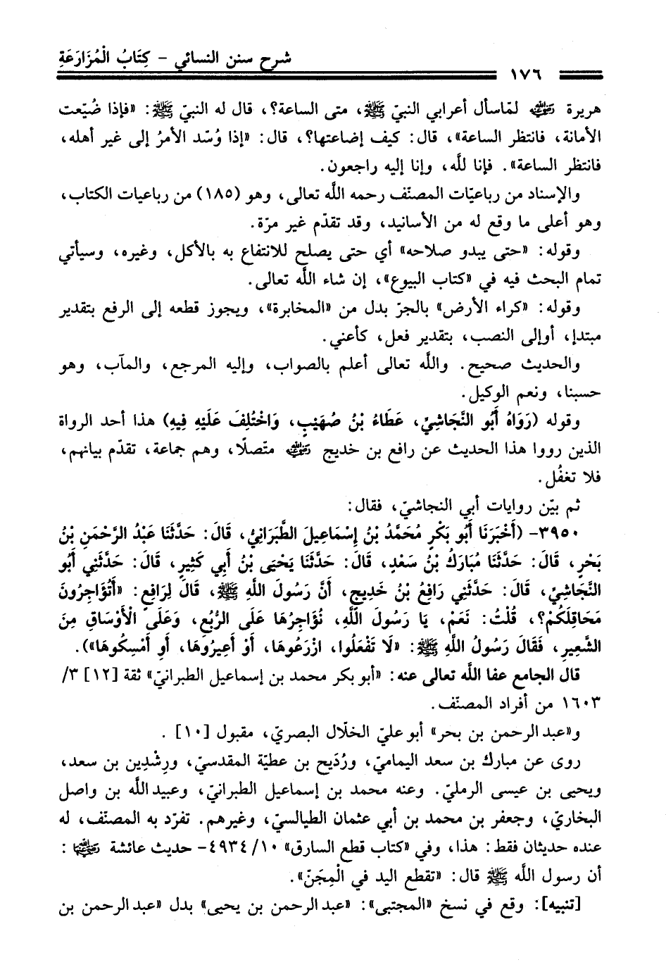3950 - (أَخْبَرَنَا أَبُو بَكْرٍ مُحَمَّدُ بْنُ إِسْمَاعِيلَ الطَّبَرَانِيُّ, قَالَ: حَدَّثَنَا عَبْدُ الرَّحْمَنِ بْنُ بَحْرٍ, قَالَ: حَدَّثَنَا مُبَارَكُ بْنُ سَعِيدٍ, قَالَ: حَدَّثَنَا يَحْيَى بْنُ أَبِي كَثِيرٍ, قَالَ: حَدَّثَنِي أَبُو النَّجَاشِيِّ, قَالَ: حَدَّثَنِي رَافِعُ بْنُ خَدِيجٍ, أَنَّ رَسُولَ اللَّهِ - صلى اللَّه عليه وسلم -, قَالَ لِرَافِعٍ: «أَتُؤَاجِرُونَ مَحَاقِلَكُمْ؟ , قُلْتُ: نَعَمْ, يَا رَسُولَ اللَّهِ, نُؤَاجِرُهَا عَلَى الرُّبُعِ, وَعَلَى الأَوْسَاقِ مِنَ الشَّعِيرِ, فَقَالَ رَسُولُ اللَّهِ - صلى اللَّه عليه وسلم -: «لاَ تَفْعَلُوا, ازْرَعُوهَا, أَوْ أَعِيرُوهَا, أَوْ أَمْسِكُوهَا»).