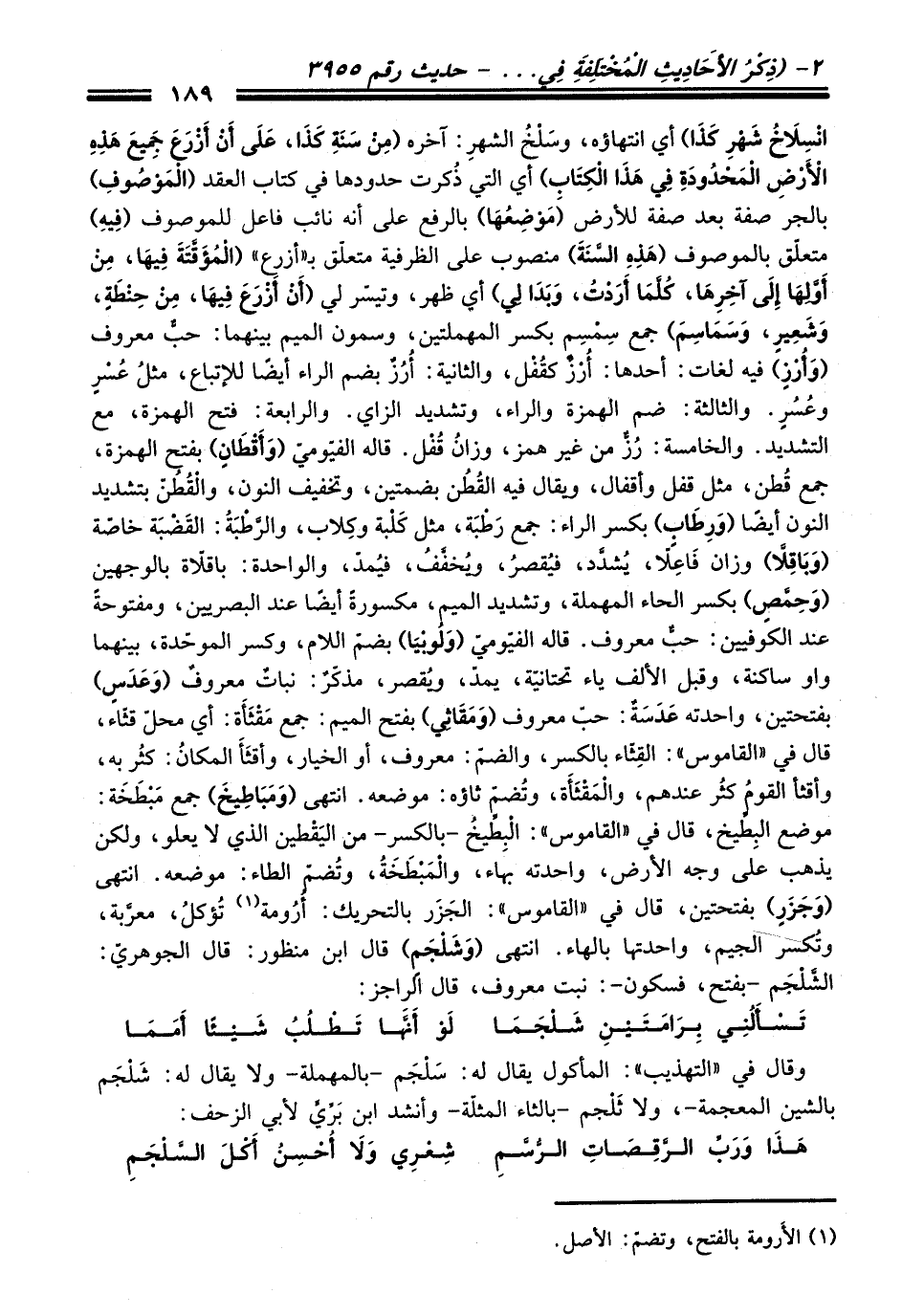 وقال في "التهذيب": المأكول يقال له: سَلْجَم- بالمهملة- ولا يقال له: شَلْجَم بالشين المعجمة-، ولا ثَلْجم -بالثاء المثلّة- وأنشد ابن بَريٍّ لأبي الزحف: