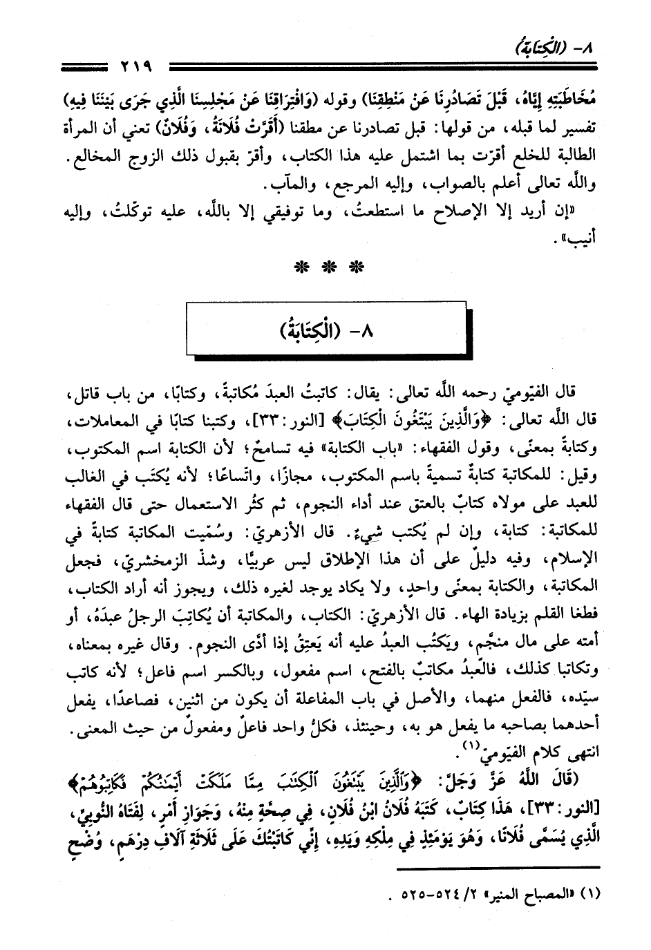 (¬1) "المصباح المنير" 2/ 524 - 525.