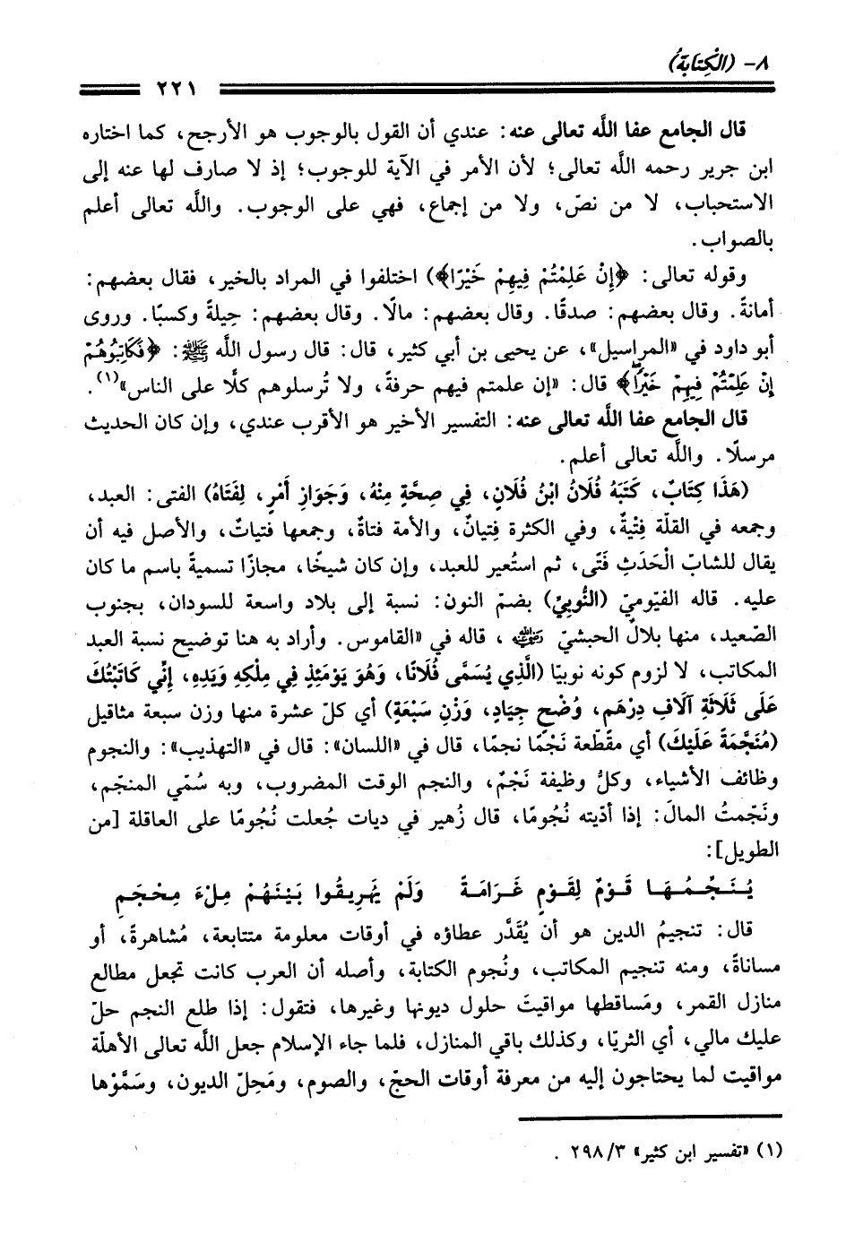 قال الجامع - عفا اللَّه تعالى عنه -: عندي أن القول بالوجوب هو الأرجح، كما اختاره ابن جرير -رحمه اللَّه تعالى-؛ لأن الأمر في الآية للوجوب؛ إذ لا صارف لها عنه إلى الاستحباب، لا من نصّ، ولا من إجماع، فهي على الوجوب. واللَّه تعالى أعلم بالصواب.