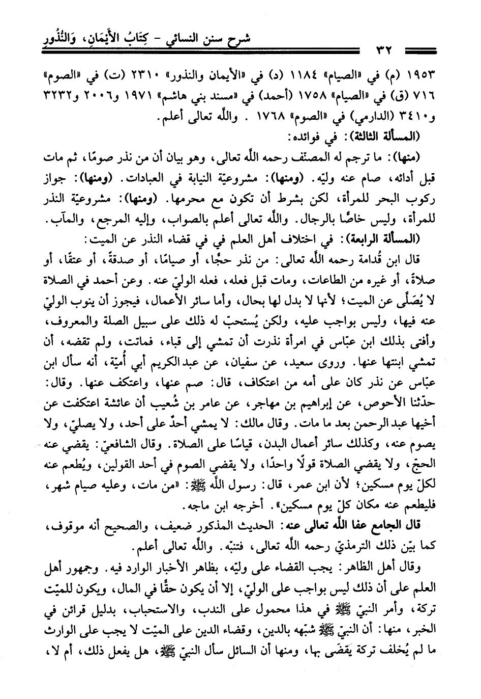 (المسألة الرابعة): في اختلاف أهل العلم في في قضاء النذر عن الميت: