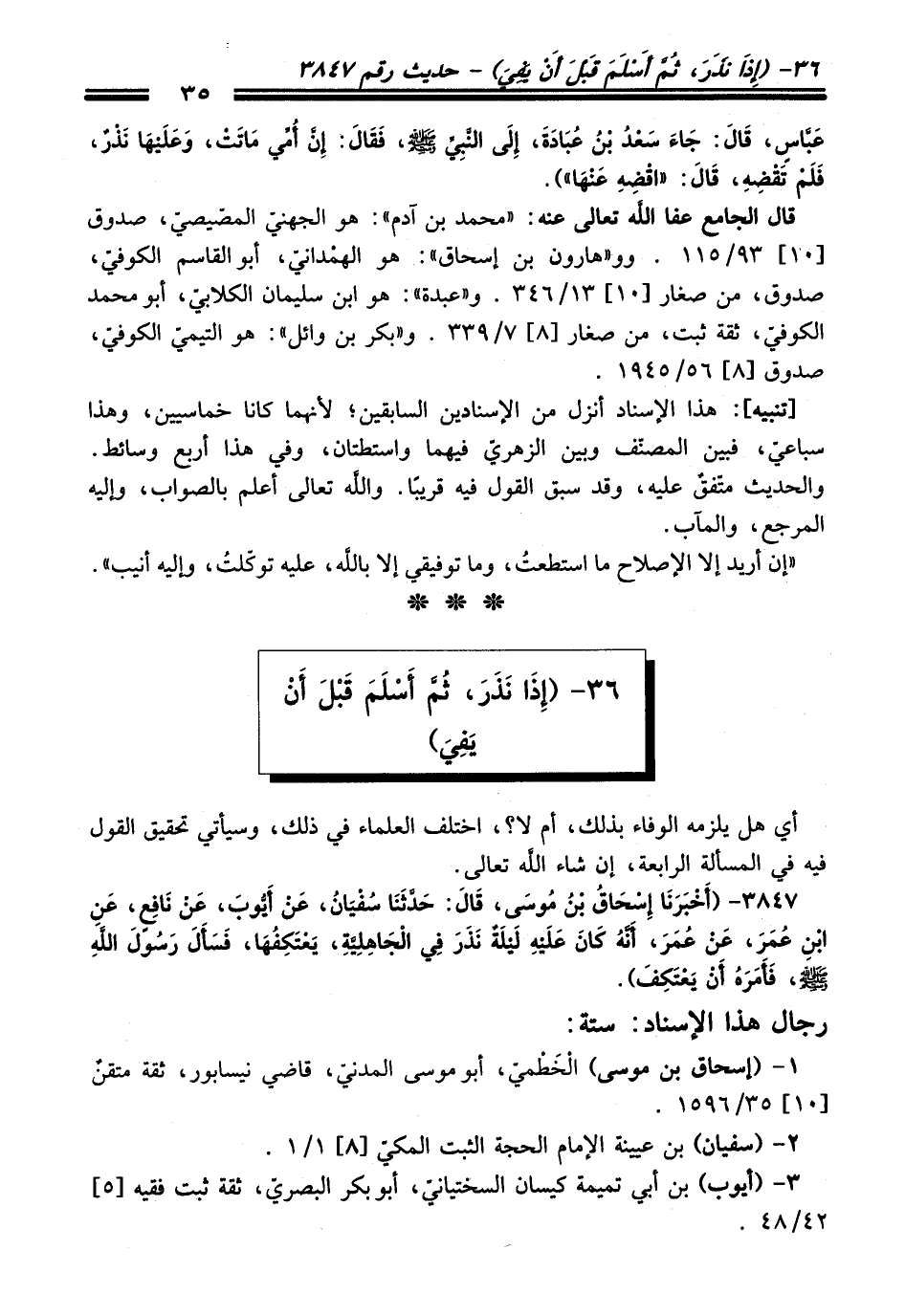 36 - (إِذَا نَذَرَ, ثُمَّ أَسْلَمَ قَبْلَ أَنْ يَفِيَ)