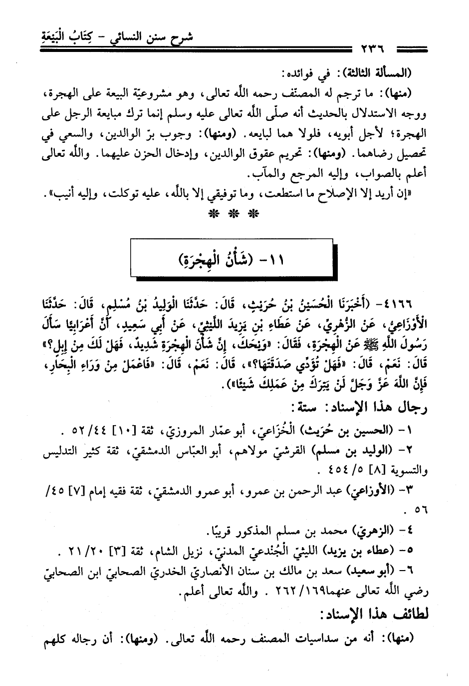 4166 - (أَخْبَرَنَا الْحُسَيْنُ بْنُ حُرَيْثٍ، قَالَ: حَدَّثَنَا الْوَلِيدُ بْنُ مُسْلِمٍ، قَالَ: حَدَّثَنَا الأَوْزَاعِيُّ، عَنِ الزُّهْرِيِّ، عَنْ عَطَاءِ بْنِ يَزِيدَ اللَّيْثِيِّ، عَنْ أَبِي سَعِيدٍ، أَنَّ أَعْرَابِيًّا سَأَلَ رَسُولَ اللَّهِ -صلى الله عليه وسلم- عَنِ الْهِجْرَةِ، فَقَالَ: "وَيْحَكَ، إِنَّ شَأْنَ الْهِجْرَةِ شَدِيدٌ، فَهَلْ لَكَ مِنْ إِبِلٍ؟ " قَالَ: نَعَمْ، قَالَ: "فَهَلْ تُؤَدِّي صَدَقَتَهَا؟ "، قَالَ: نَعَمْ، قَالَ: "فَاعْمَلْ مِنْ وَرَاءِ الْبِحَارِ، فَإِنَّ اللَّهَ عَزَّ وَجَلَّ لَنْ يَتِرَكَ مِنْ عَمَلِكَ شَيْئًا").