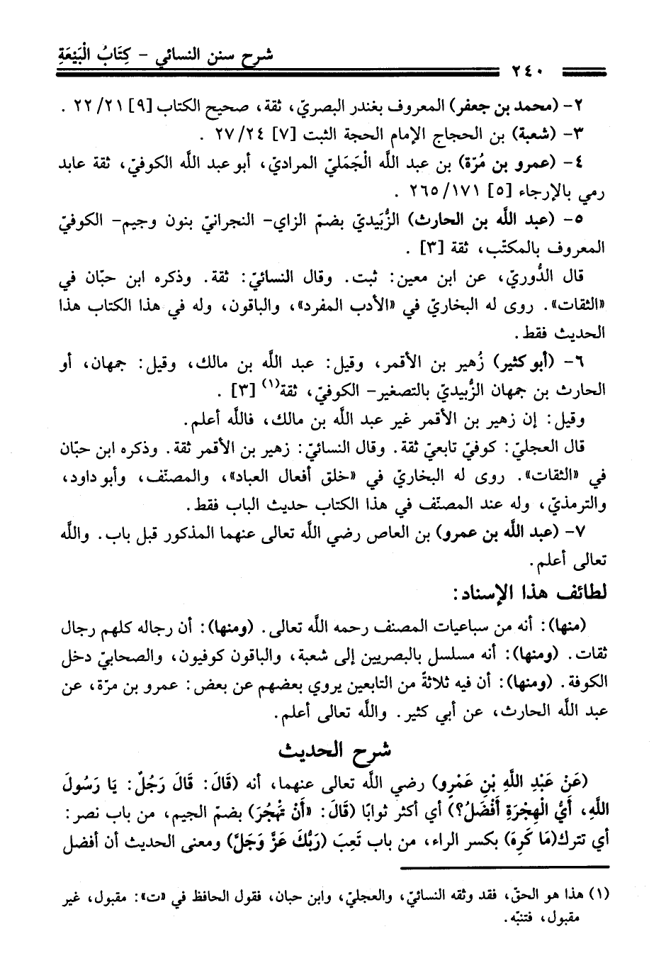 (عَنْ عَبْدِ اللَّهِ بْنِ عَمْرٍو) رضي الله تعالى عنهما، أنه (قَالَ: قَالَ رَجُلٌ: يَا رَسُولَ اللَّهِ، أَيُّ الْهِجْرَةِ أَفْضَلُ؟) أي أكثر ثوابًا (قَالَ: "أَنْ تَهْجُر) بضم الجيم، منْ باب نصر: أي تترك (مَا كَرِهَ) بكسر الراء، منْ باب تَعِبَ (رَبُّكَ عَزَّ وَجَلَّ) ومعنى الحديث أن أفضل