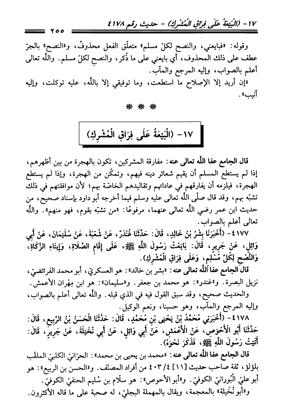 17 - (الْبَيْعَةِ عَلَى فِرَاقِ الْمُشْرِكِ)