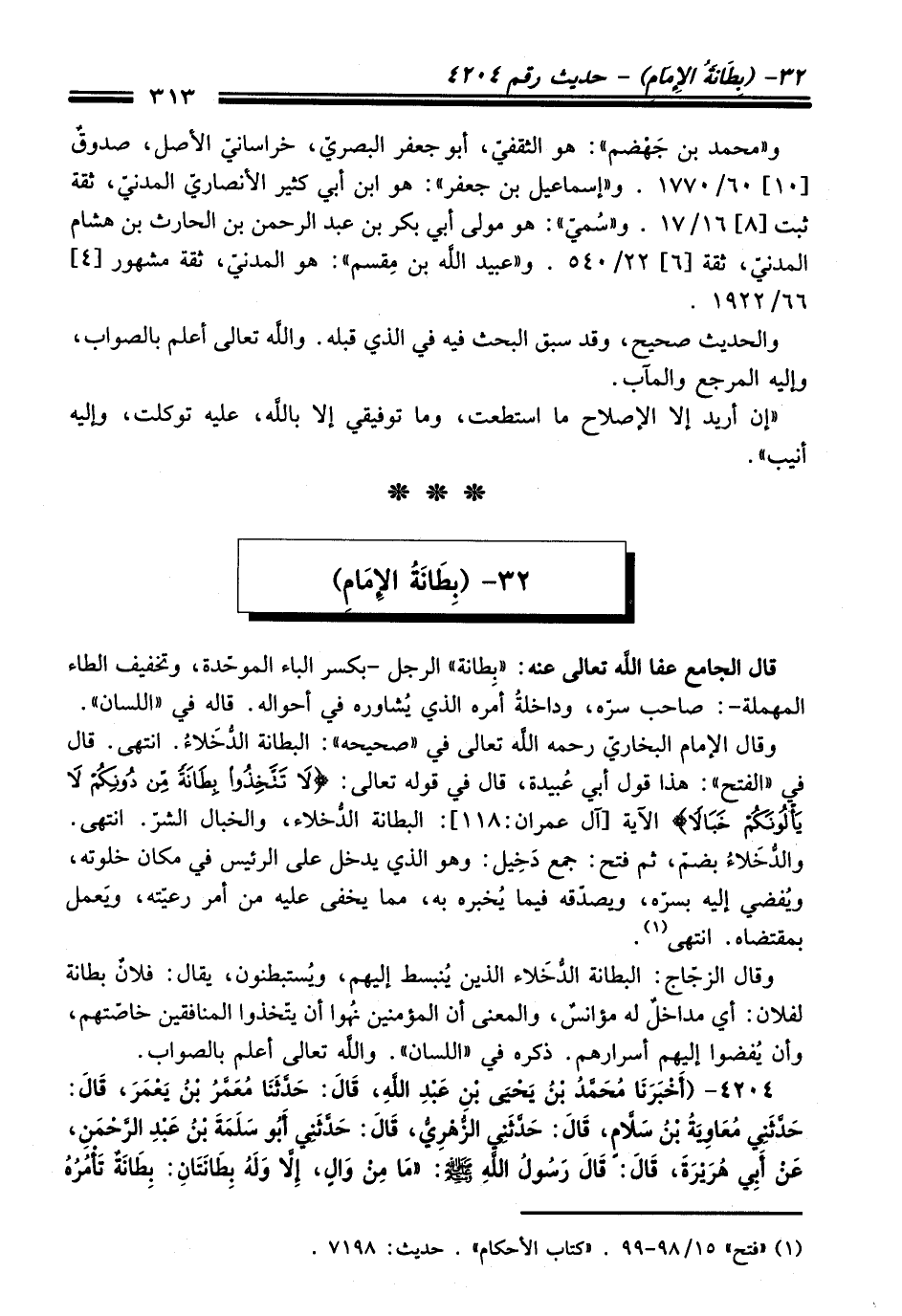 (¬1) "فتح" 15/ 98 - 99. "كتاب الأحكام". حديث: 7198.