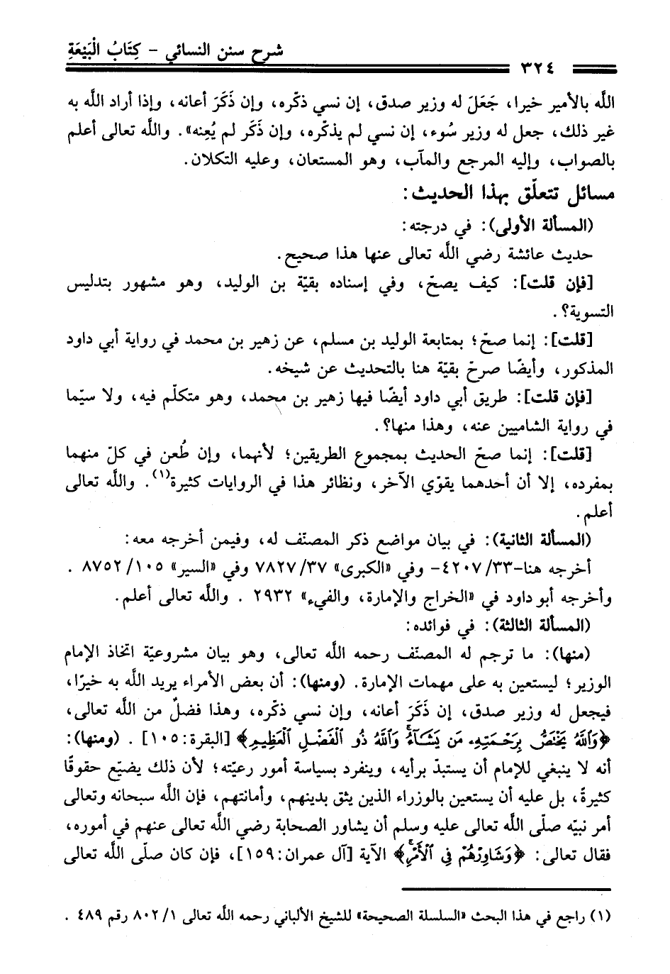 الله بالأمير خيرا، جَعَلَ له وزير صدق، إن نسي ذكّره، وإن ذَكَرَ أعانه، وإذا أراد الله به غير ذلك، جعل له وزير سُوء، إن نسي لم يذكّره، وإن ذَكَر لم يُعِنه". والله تعالى أعلم بالصواب، وإليه المرجع والمآب، وهو المستعان، وعليه التكلان.