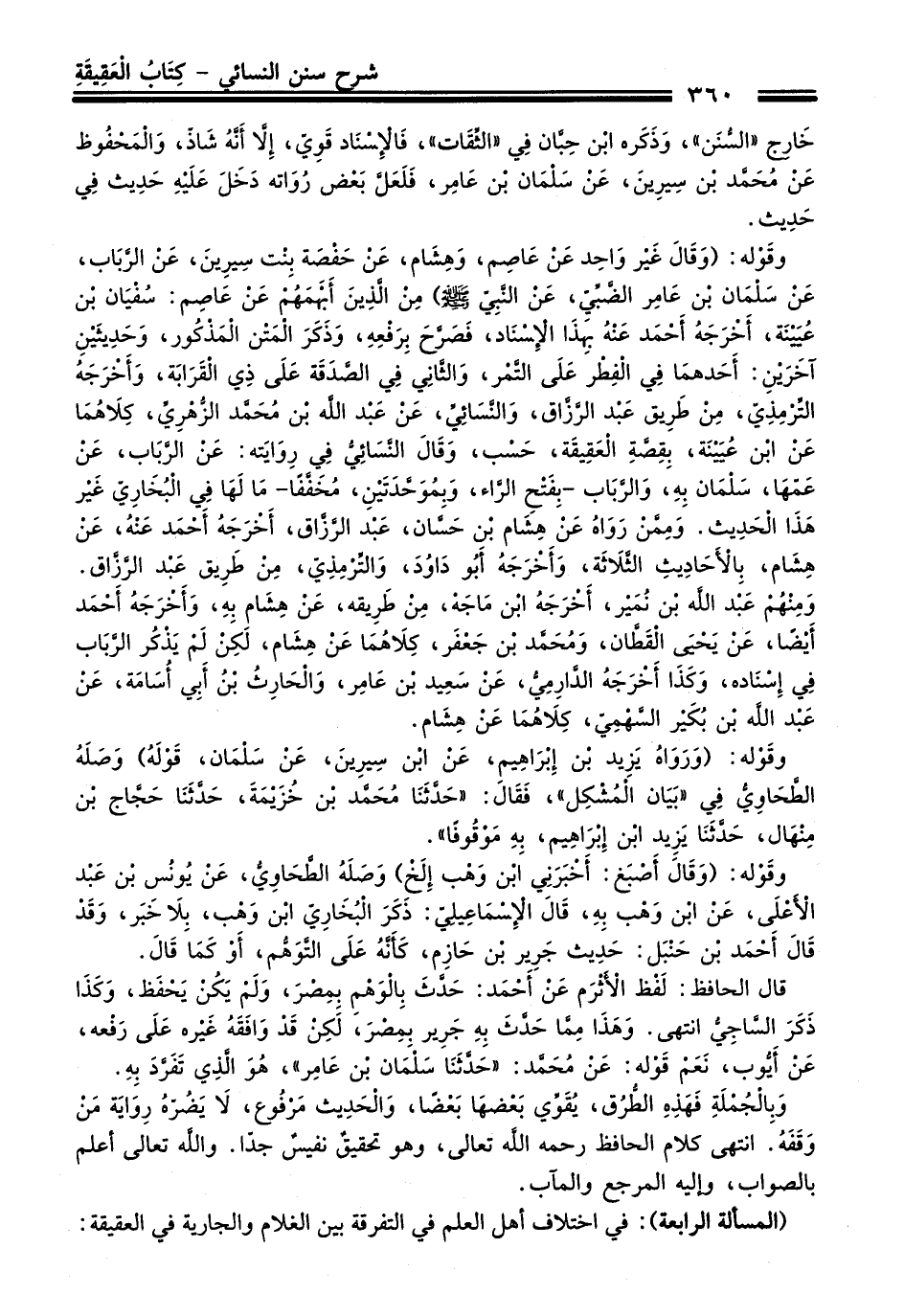 خَارج "السُّنَن"، وذكره ابْن حِبَّان فِي "الثِّقات"، فالإِسناد قوِيّ، إِلا أنّهُ شَاذّ، والمَحْفُوظ عن مُحمَّد بن سِيرِينَ، عن سَلْمَان بن عَامِر، فَلعَلَّ بَعْض رُواته دخل عَلَيْهِ حدِيث فِي حَدِيث.
