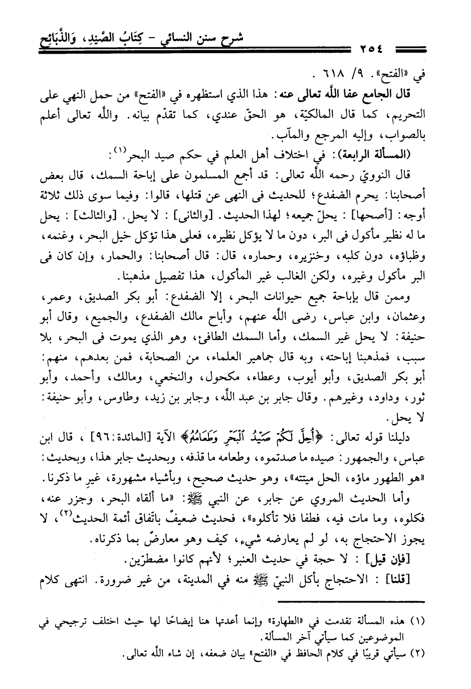 قَالَ الجامع عفا الله تعالى عنه: هَذَا الذي استظهره فِي "الفتح" منْ حمل النهي عَلَى التحريم، كما قَالَ المالكية، هو الحقّ عندي، كما تقدّم بيانه. والله تعالى أعلم بالصواب، وإليه المرجع والمآب.
