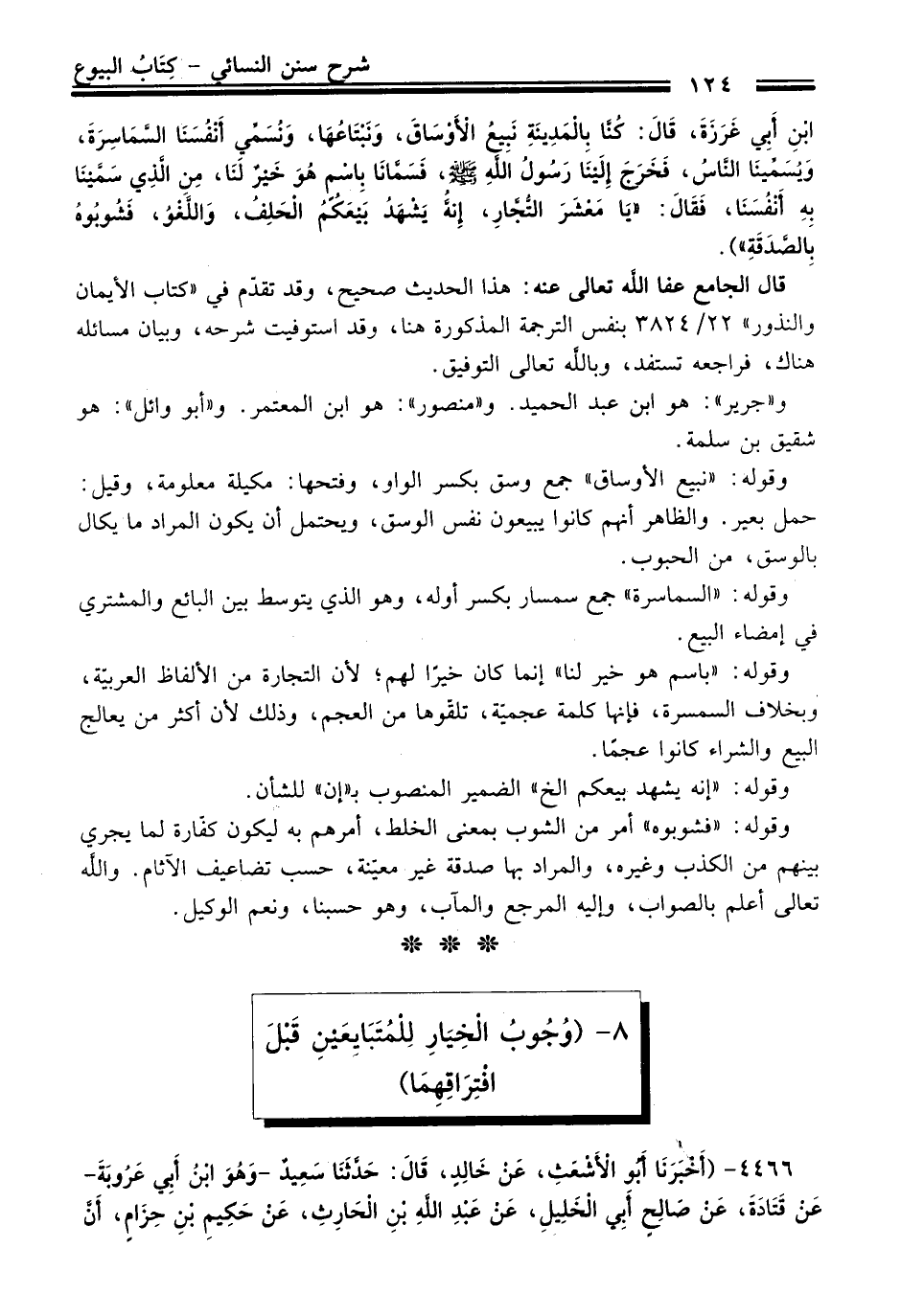 بْنِ أَبِي غَرَزَةَ، قَالَ: كُنَّا بِالْمَدِينَةِ نَبِيعُ الأَوْسَاقَ، وَنَبْتَاعُهَا، وَنُسَمِّي أَنْفُسَنَا السَّمَاسِرَةَ، وَيُسَمِّينَا النَّاسُ، فَخَرَجَ إِلَيْنَا رَسُولُ اللَّهِ -صلى الله عليه وسلم-، فَسَمَّانَا بِاسْمٍ هُوَ خَيْرٌ لَنَا، مِنَ الَّذِي سَمَّيْنَا بِهِ أَنْفُسَنَا، فَقَالَ: "يَا مَعْشَرَ التُّجَّارِ، إِنَّهُ يَشْهَدُ بَيْعَكُمُ الْحَلِفُ، وَاللَّغْوُ، فَشُوبُوهُ بِالصَّدَقَةِ").