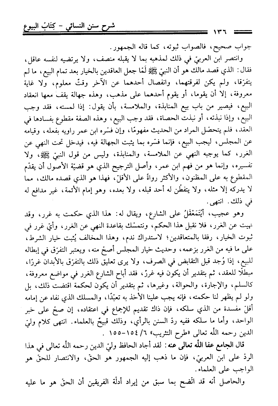 قَالَ الجامع عفا الله تعالى عنه: فقد أجاد الحافظ وليّ الدين رحمه الله تعالى فِي هَذَا الردّ عَلَى ابن العربي، فإن ما ذهب إليه الجمهور هو الحقّ، والانتصار للحقّ هو الواجب عَلَى العلماء.