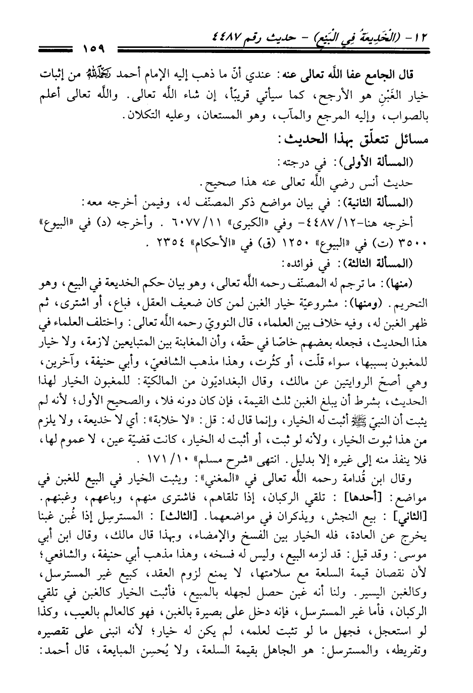 قَالَ الجامع عفا الله تعالى عنه: عندي أنّ ما ذهب إليه الإِمام أحمد رحمه الله منْ إثبات خيار الغَبْنِ هو الأرجح، كما سيأتي قريبًا، إن شاء الله تعالى. والله تعالى أعلم بالصواب، وإليه المرجع والمآب، وهو المستعان، وعليه التكلان.