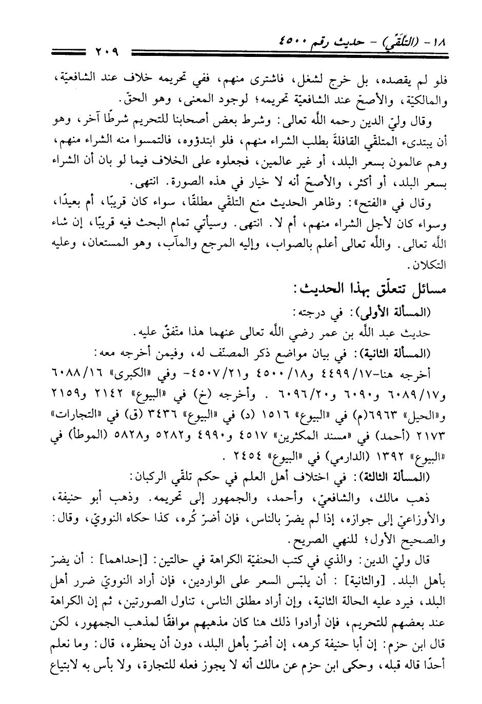 وَقَالَ فِي "الفتح": وظاهر الْحَدِيث منع التلقّي مطلقًا، سواء كَانَ قريبًا، أم بعيدًا، وسواء كَانَ لأجل الشراء منهم، أم لا. انتهى. وسيأتي تمام البحث فيه قريبًا، إن شاء الله تعالى. والله تعالى أعلم بالصواب، وإليه المرجع والمآب، وهو المستعان، وعليه التكلان.